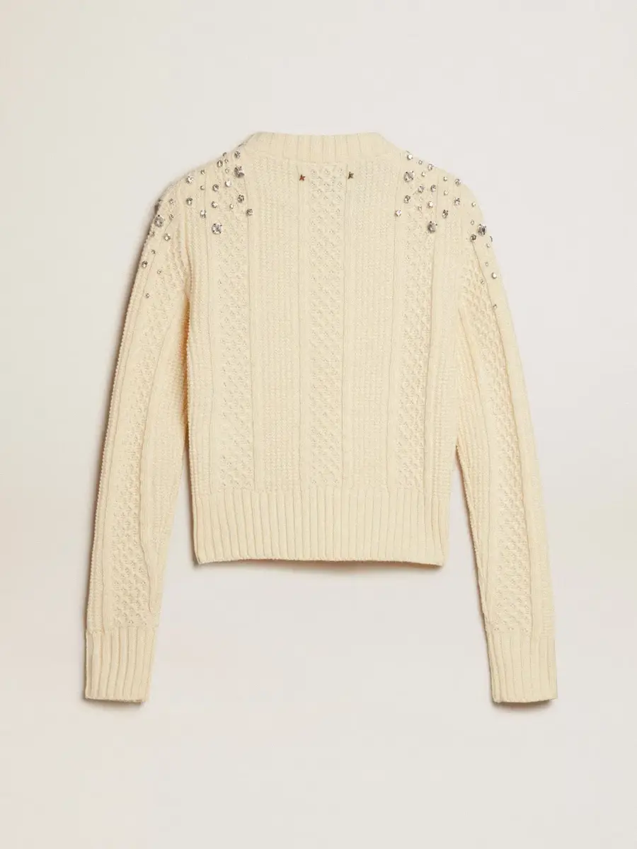 Sé el primero en valorar “Jersey corto blanco desgastado para mujer con cristales decorativos”