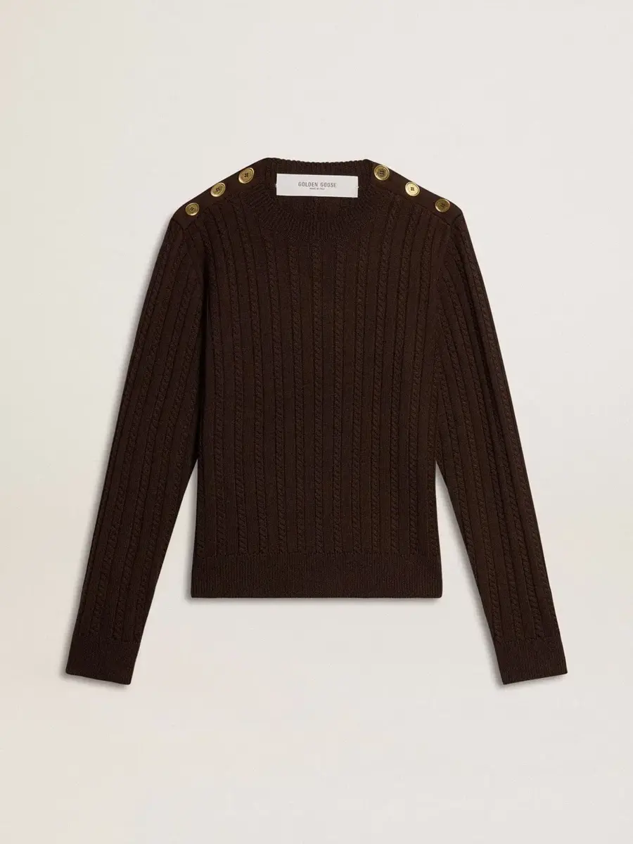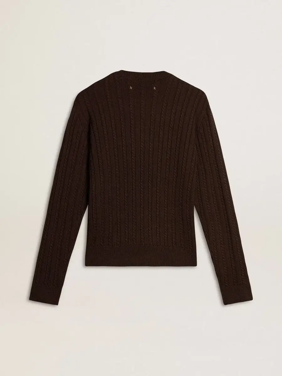 La segunda entrega de la colección Otoño/Invierno 25 se desarrolla como un viaje relajado y refrescante, tejido en el tejido de cada una de las piezas. En una mezcla de lana marrón, este jersey de cuello redondo y corte regular cuenta con botones dorados en los hombros y un patrón trenzado vertical tono sobre tono. El ribete microacanalado y dos pequeñas estrellas en la espalda añaden el toque final.