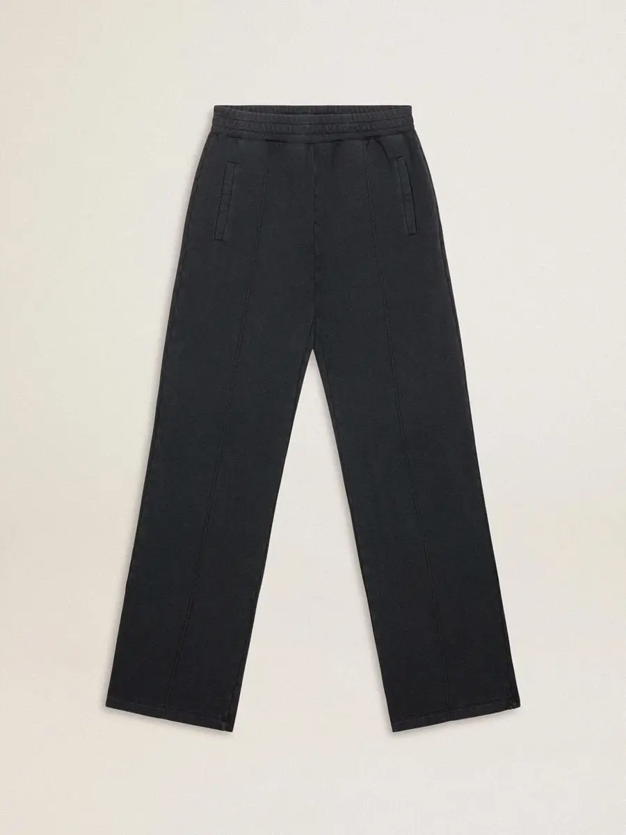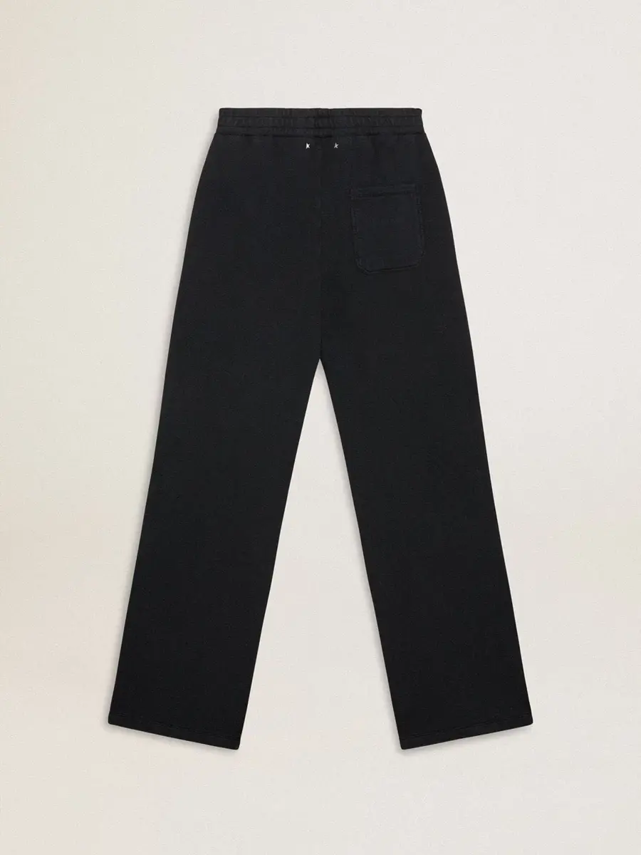 Una colección con un espíritu informal pero versátil: inspirada en los años setenta, tiene un atractivo vintage atemporal, adecuado para cualquier ocasión o look. Inspirados en el mundo de la sastrería, con un pliegue cosido en la parte delantera, estos pantalones joggers de algodón puro azul marino presentan un corte ancho. La doble estrella plateada en la parte trasera le da el toque final.