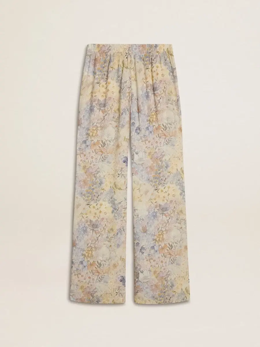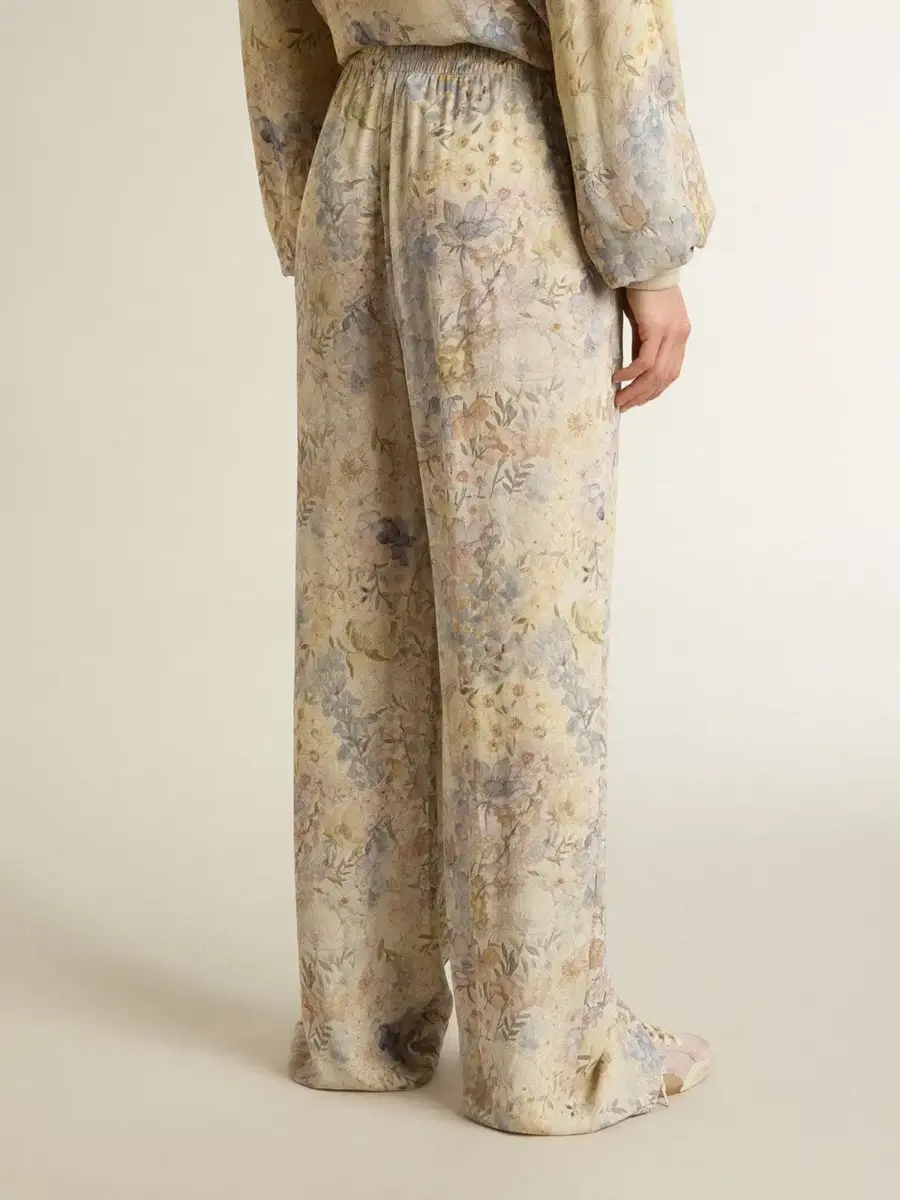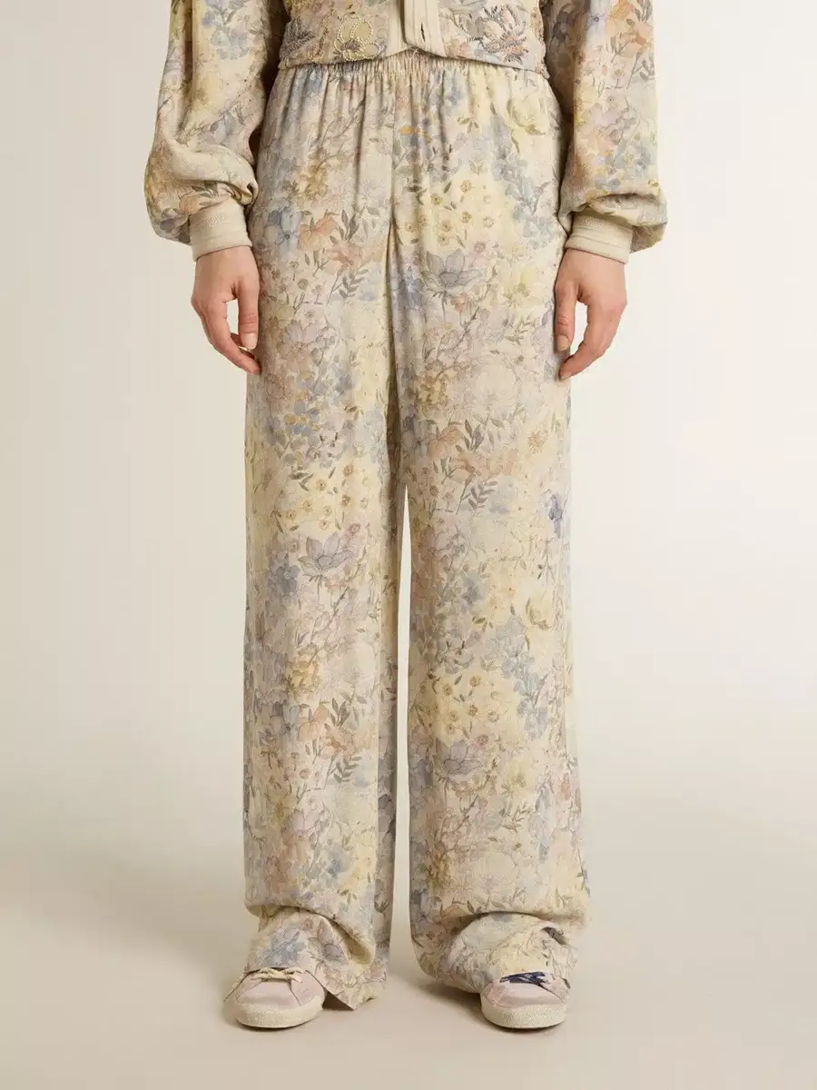 Inspirados en los icónicos años setenta, el espíritu desenfadado de esa época cobra vida con el primer lanzamiento de nuestra colección Otoño/Invierno 25. Estos suaves pantalones de chándal para mujer presentan un motivo floral multicolor en toda la prenda y una cintura elástica.