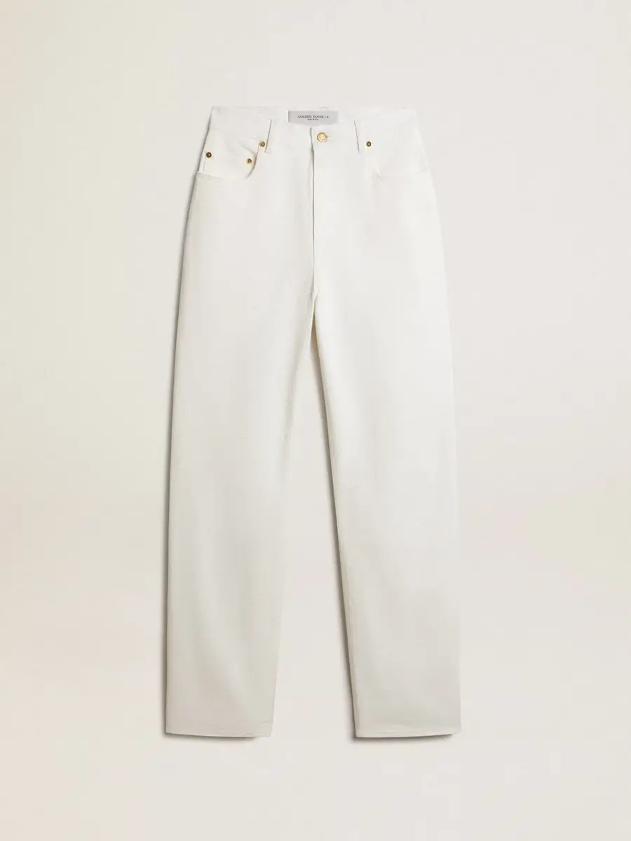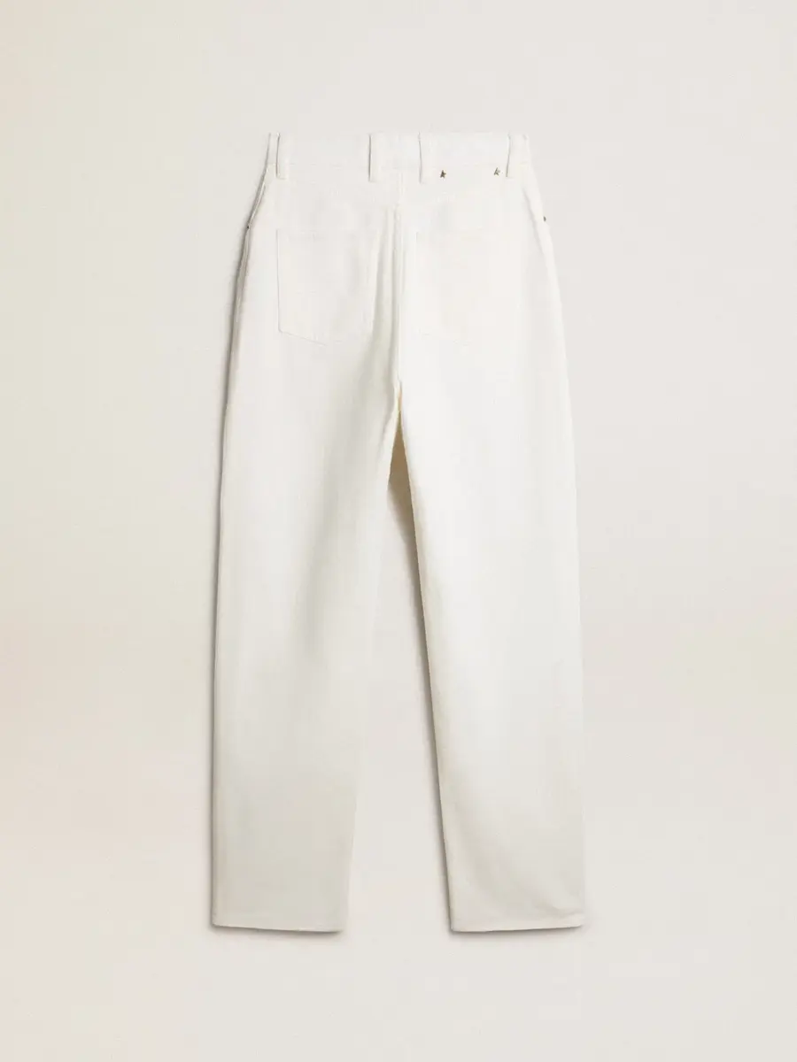 Una colección única y atemporal que encapsula el ADN de Golden Goose, diseñada para acompañarte cada día, en las buenas y en las malas, llueva o haga sol. Estos pantalones de denim de algodón blanco óptico presentan un corte recto.