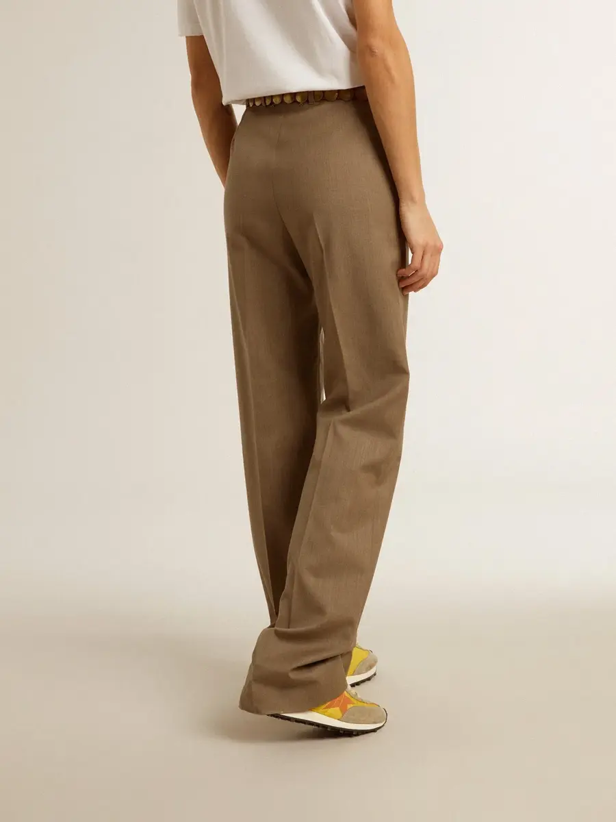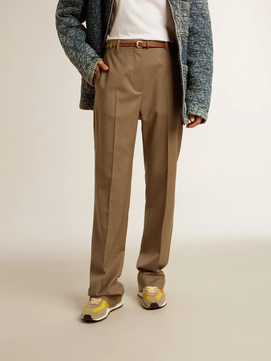 Una historia de amor con nuestra ciudad natal, Marghera. Donde todo comenzó. Nuestra última colección refleja el espíritu de nuestro lugar de origen, sus contrastes, su alma industrial y sus paisajes manufactureros, entrelazando inspiraciones tanto de la vibrante energía de la ropa de trabajo como de la refinada esencia de la sastrería tradicional. Estos elegantes pantalones de mujer en tejido sartorial presentan una pierna recta y holgada y un cinturón interior en la cintura. La elección del material no es casual, ya que esta lana ligera es ideal para llevar con la llegada del verano.