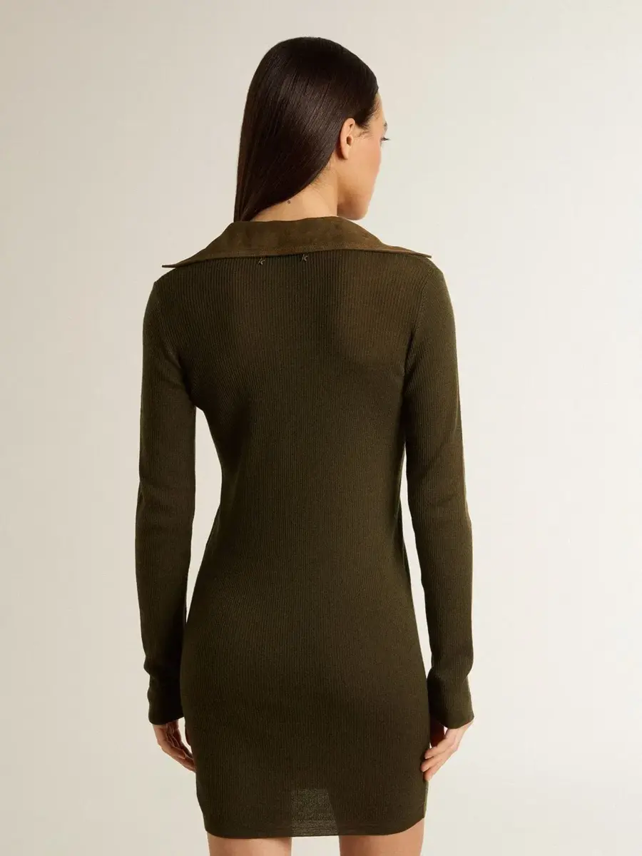 Sé el primero en valorar “Minivestido de lana verde militar con detalles de cuero”
