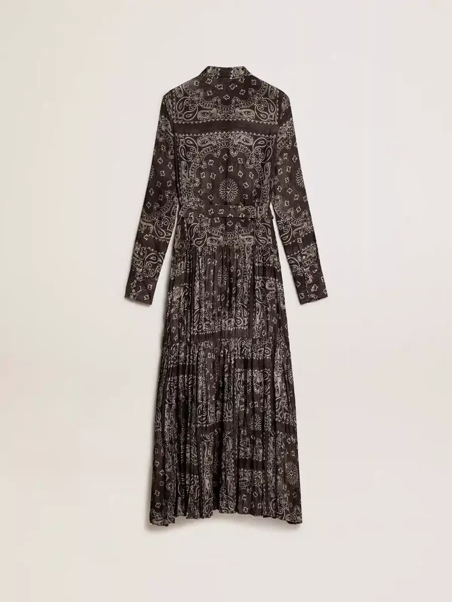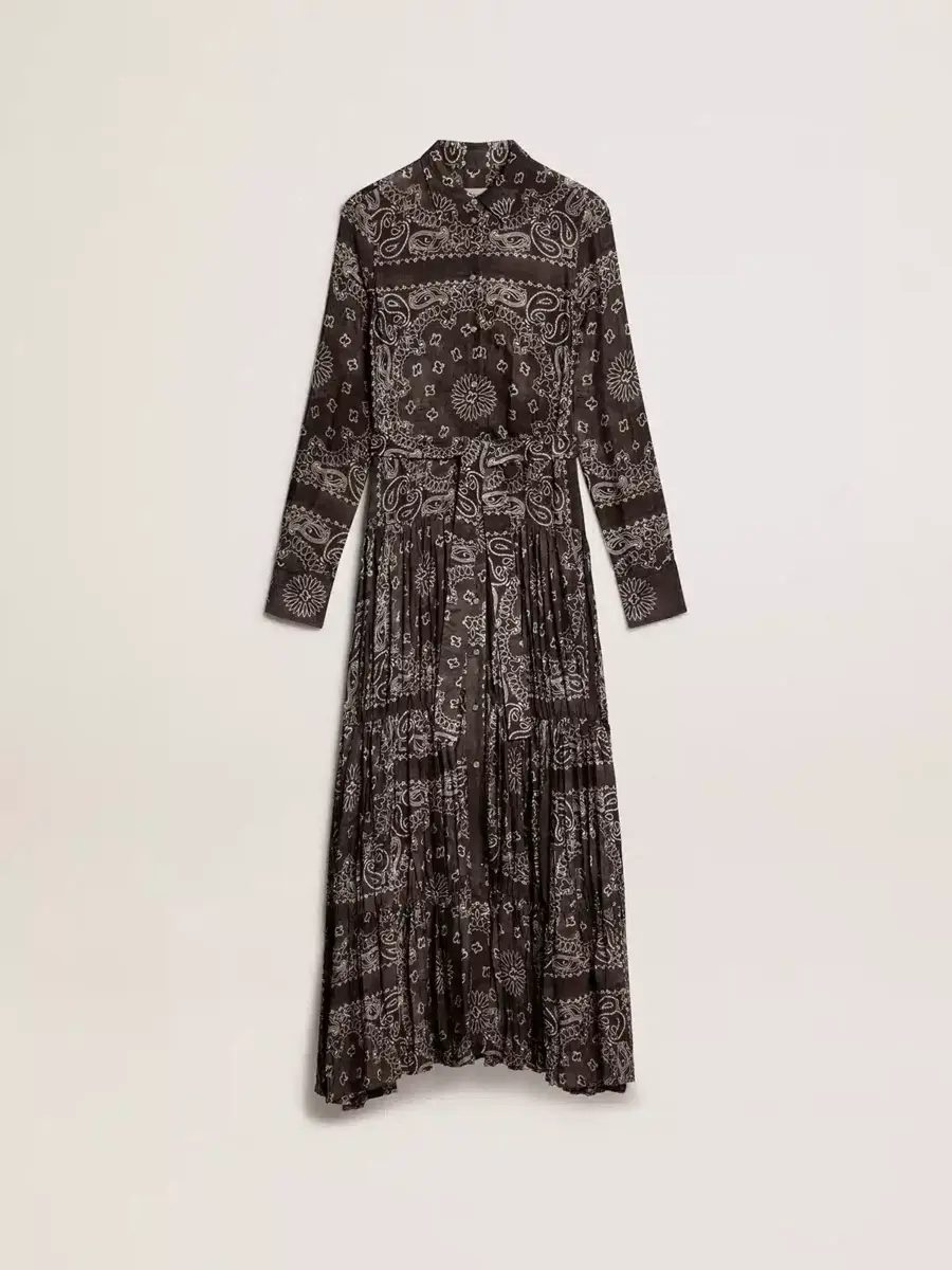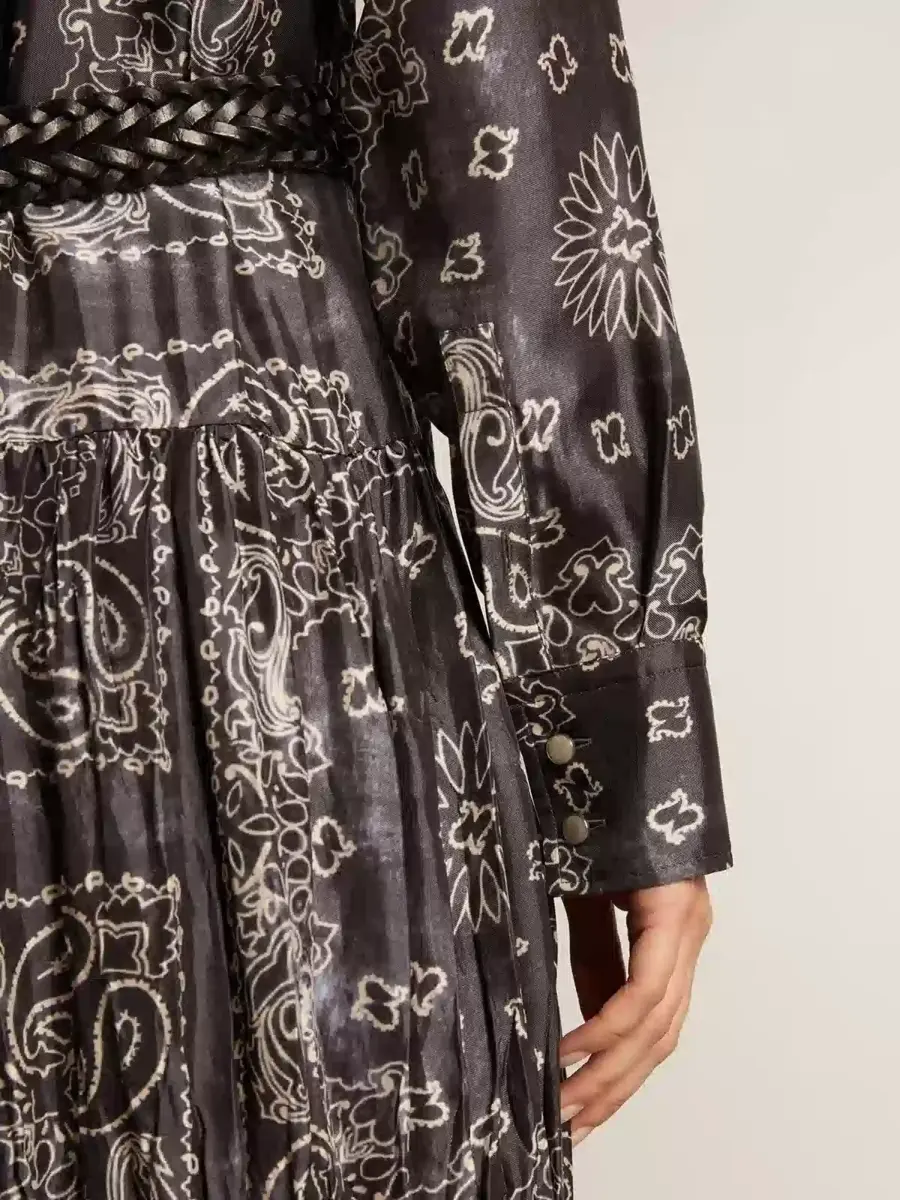 Una colección única y atemporal que encapsula el ADN de Golden Goose, diseñada para acompañarte cada día, en las buenas y en las malas, llueva o haga sol. Este vestido camisero gris antracita en viscosa fluida presenta un estampado de cachemira y un cinturón tono sobre tono en la cintura.