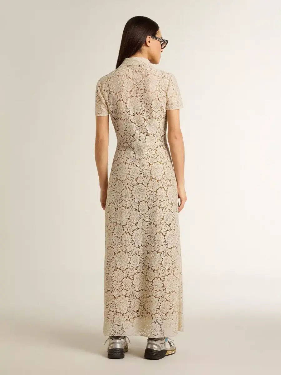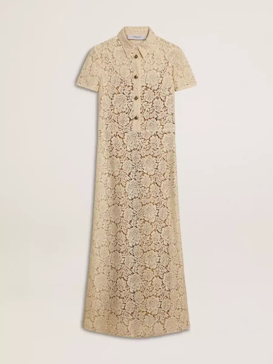 Sé el primero en valorar “Vestido midi de mujer en encaje transparente color crema”