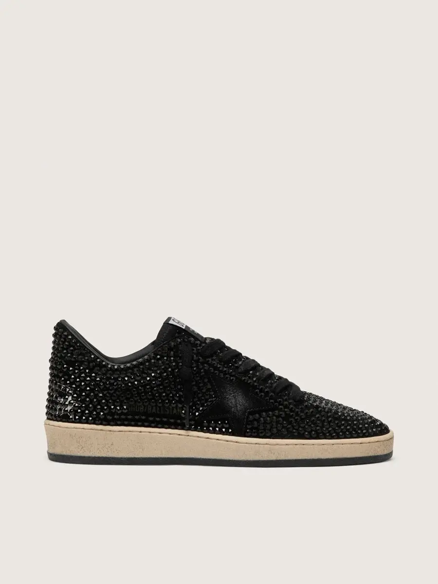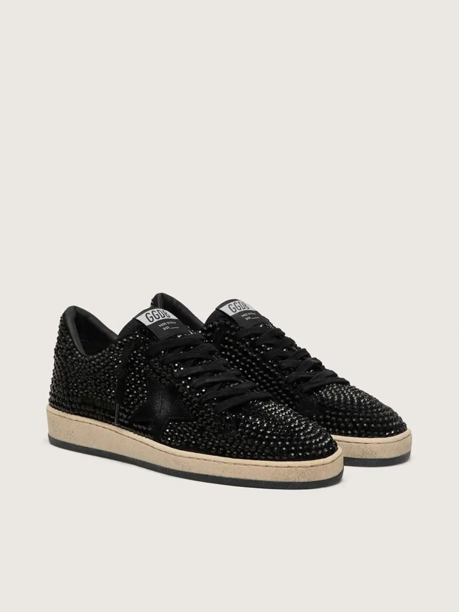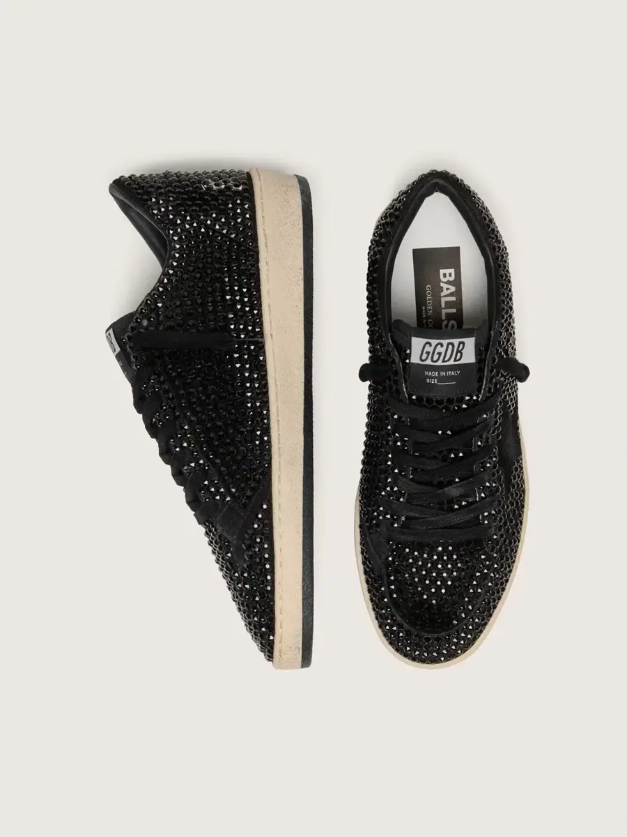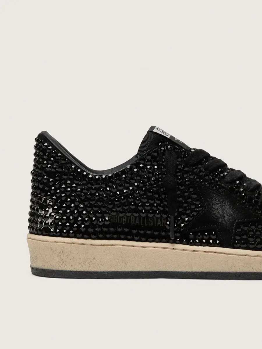 Soñando con los años ochenta. Nuestras zapatillas Ball Star tienen un aire universitario americano, a medio camino entre el baloncesto y el skate. Con una parte superior de ante negro iluminada por cristales Swarovski negros, este modelo cuenta con una estrella de ante negro y una lengüeta en el talón de ante negro con cristales Swarovski negros. Y los cordones negros añaden el toque final: cosas bonitas que nunca pasan de moda.