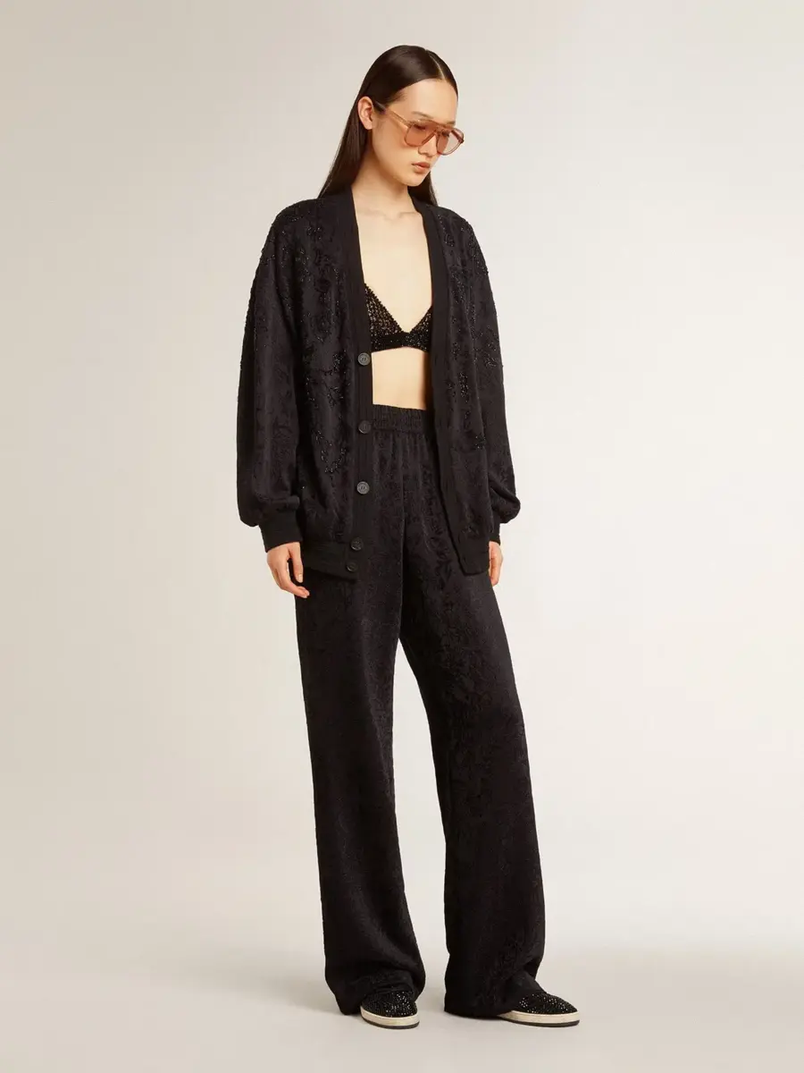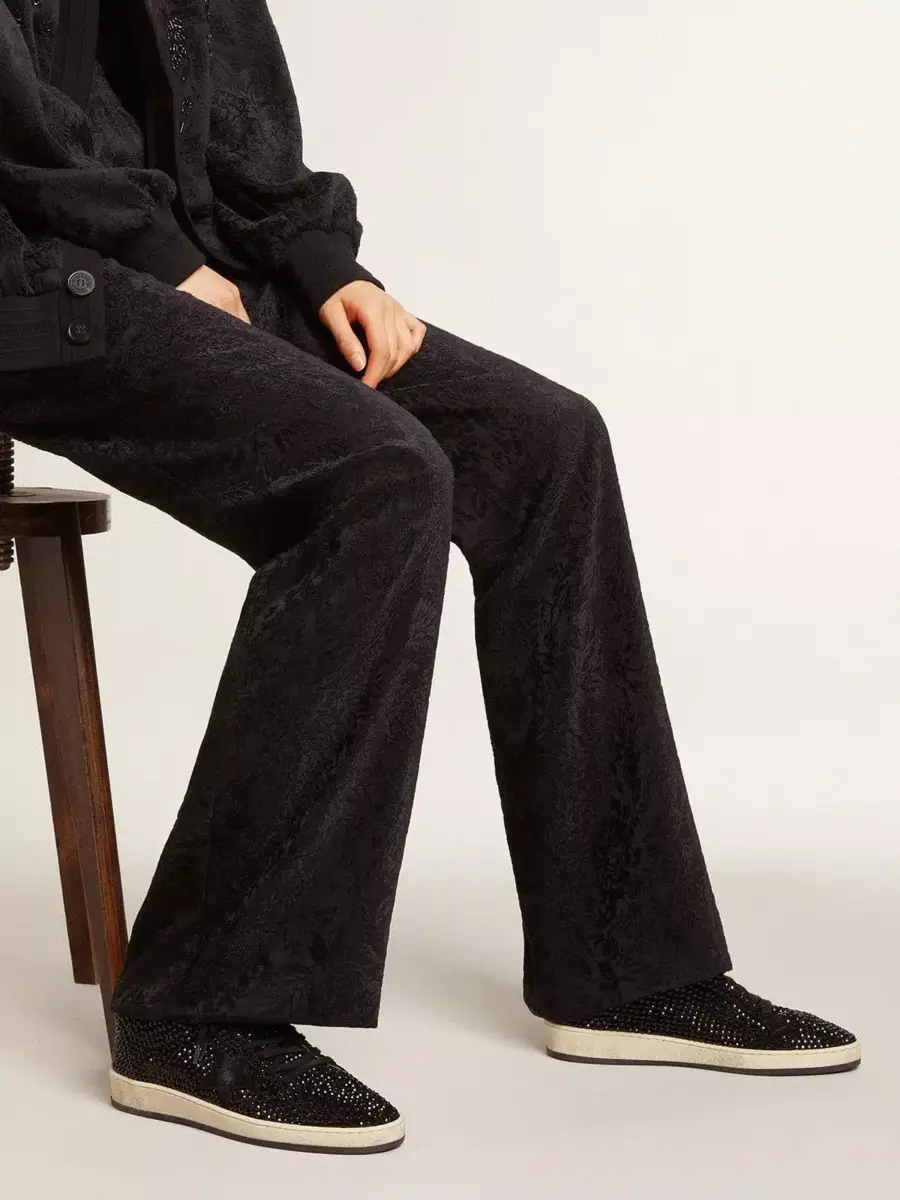 - Tapa del talón de ante negro con cristales Swarovski negros
