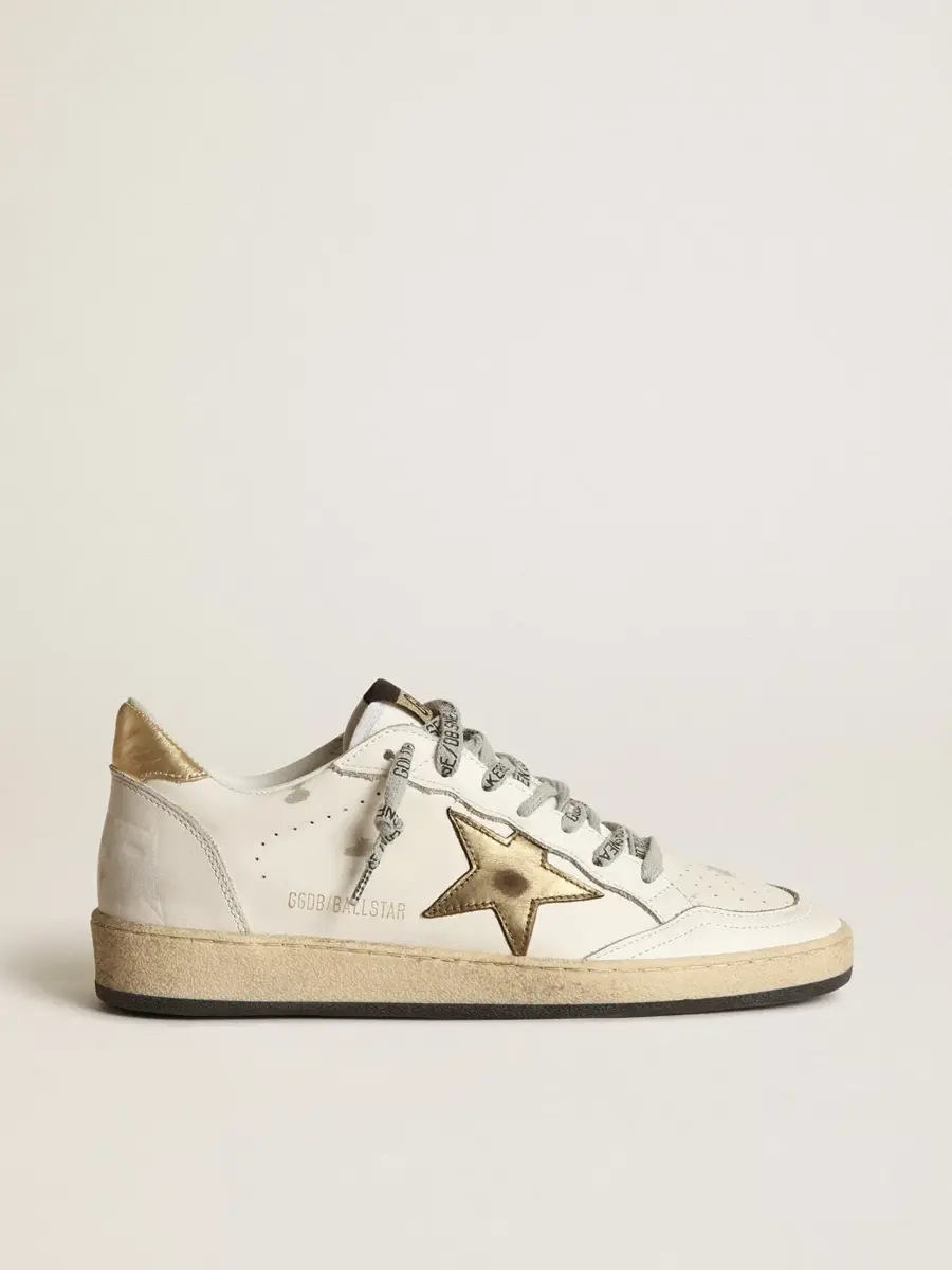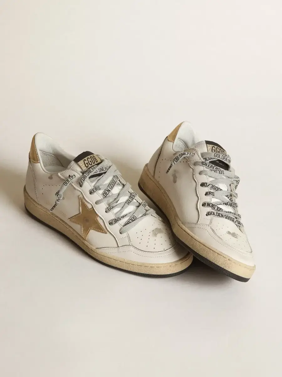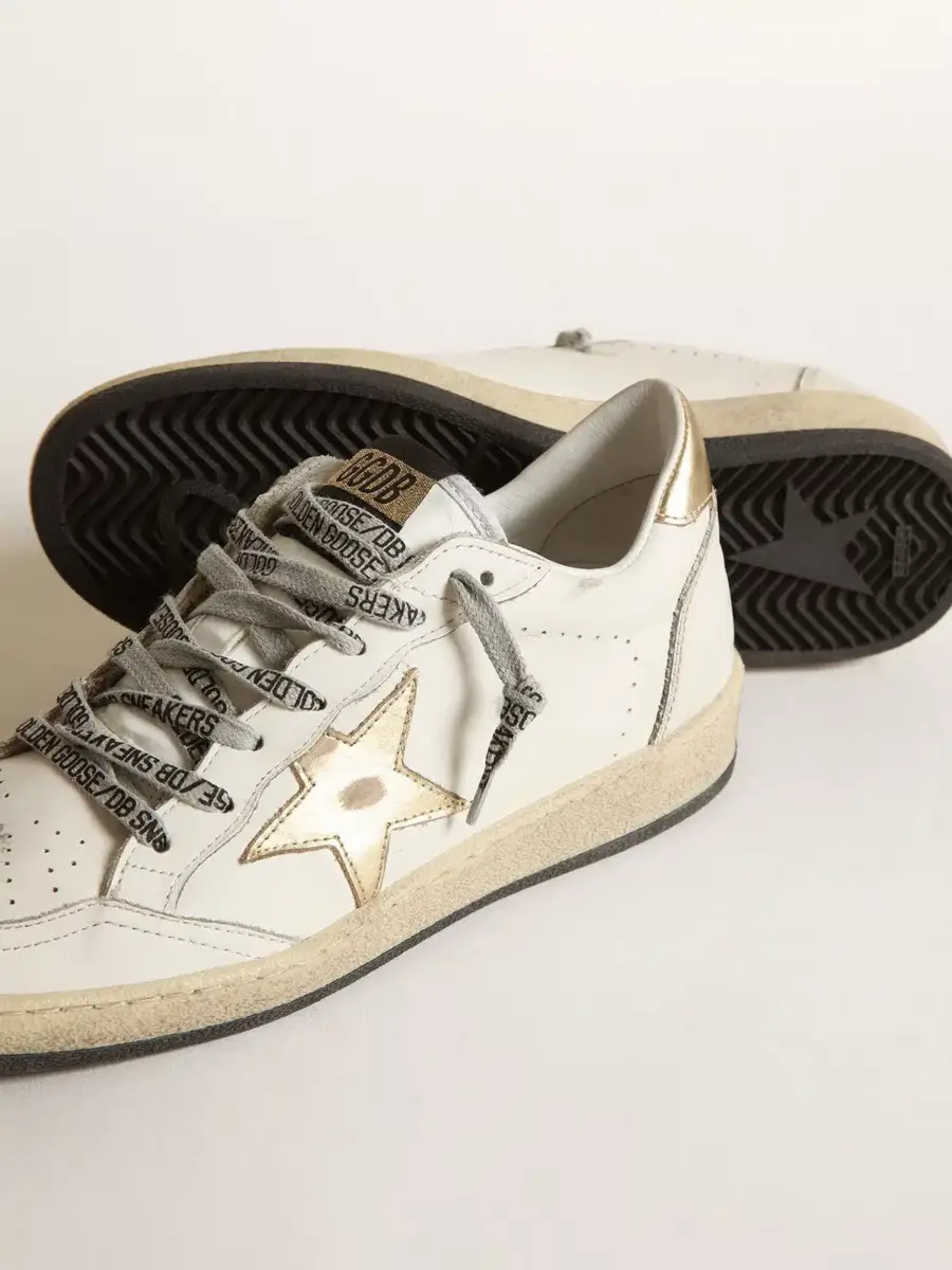 Soñando con los años ochenta. Nuestras zapatillas Ball Star tienen un aire universitario americano, a caballo entre el baloncesto y el skate. Como este modelo fabricado en piel y con estrella dorada y lengüeta en el talón.