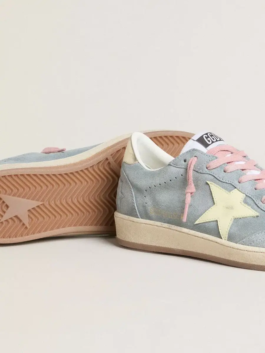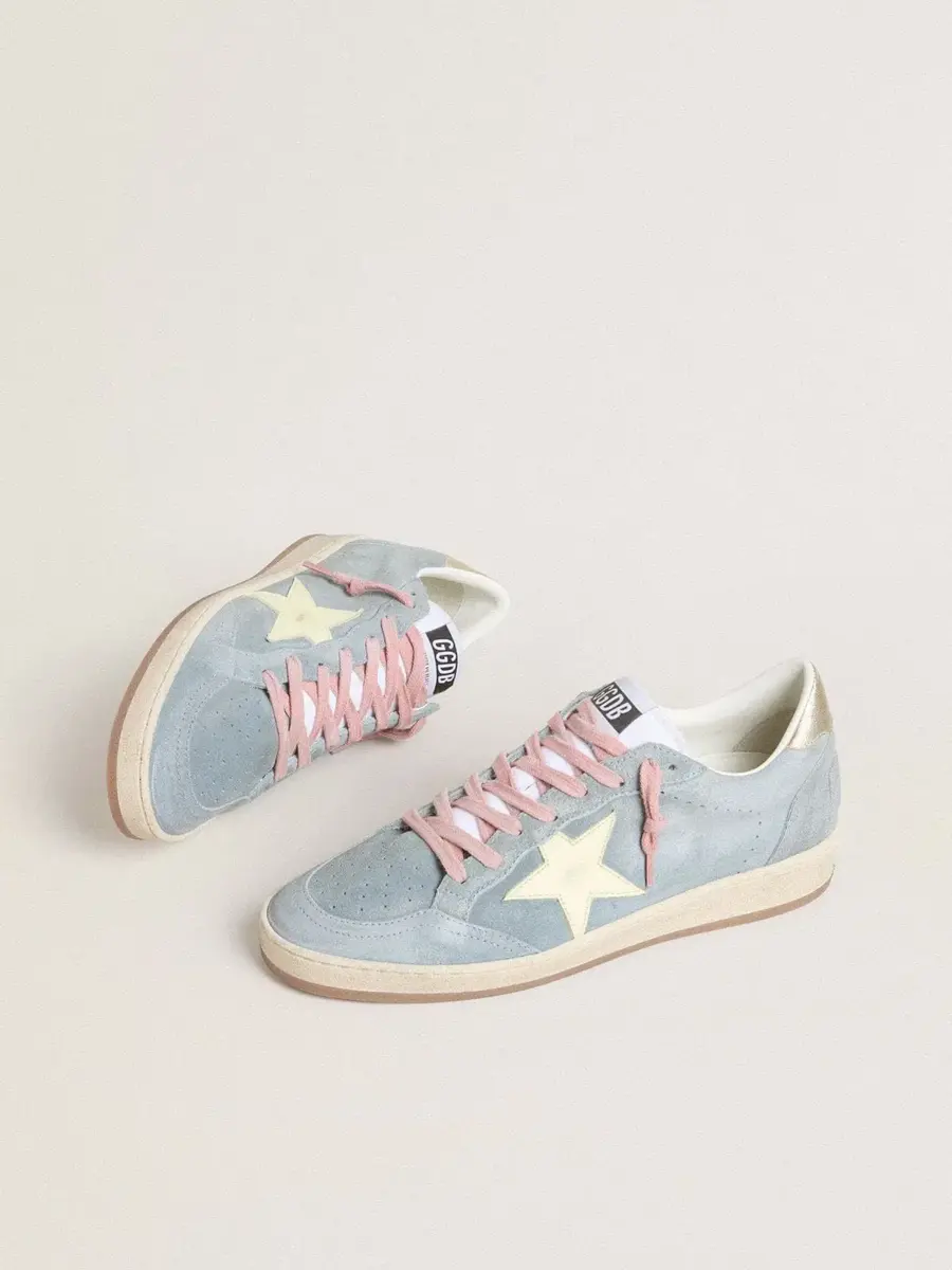 Ball Star para mujer en ante azul claro con estrella de cuero color crema