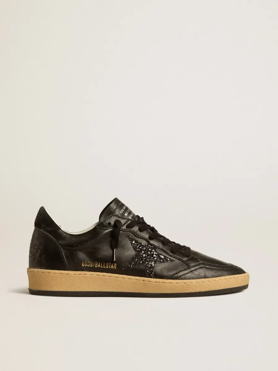 Zapatillas Ball Star para mujer en napa negra con estrella brillante negra y lengüeta de ante en el talón