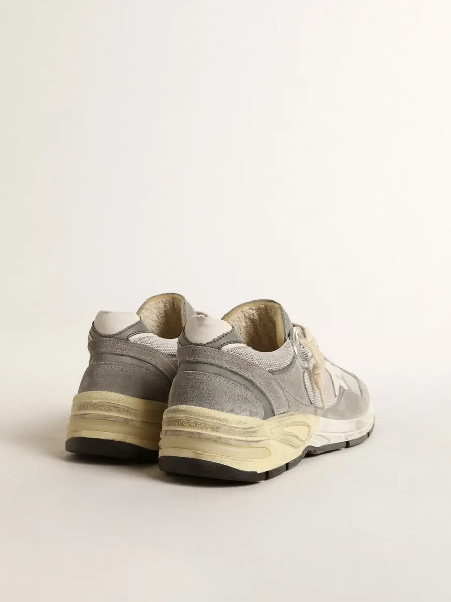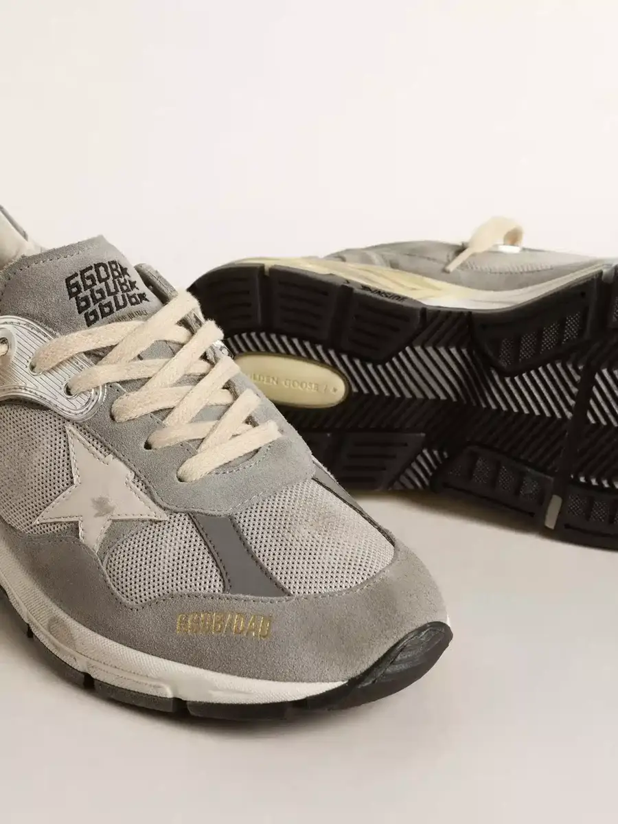 Un alma con muchas historias que contar: nuestras zapatillas Dad-Star tienen un estilo atemporal, creadas para pasar de generación en generación. Con una gran cantidad de detalles sofisticados, esta versión presenta una parte superior de ante gris y malla plateada pálida con estrella y lengüeta en el talón de cuero blanco. Las inserciones de tejido reflectante, los ojales plateados y los cordones de color crema añaden el toque final.