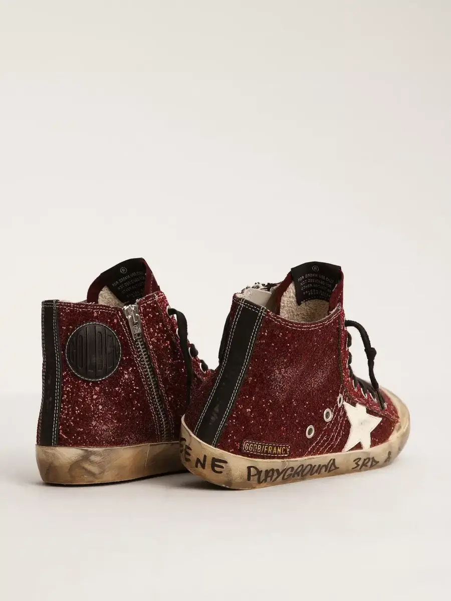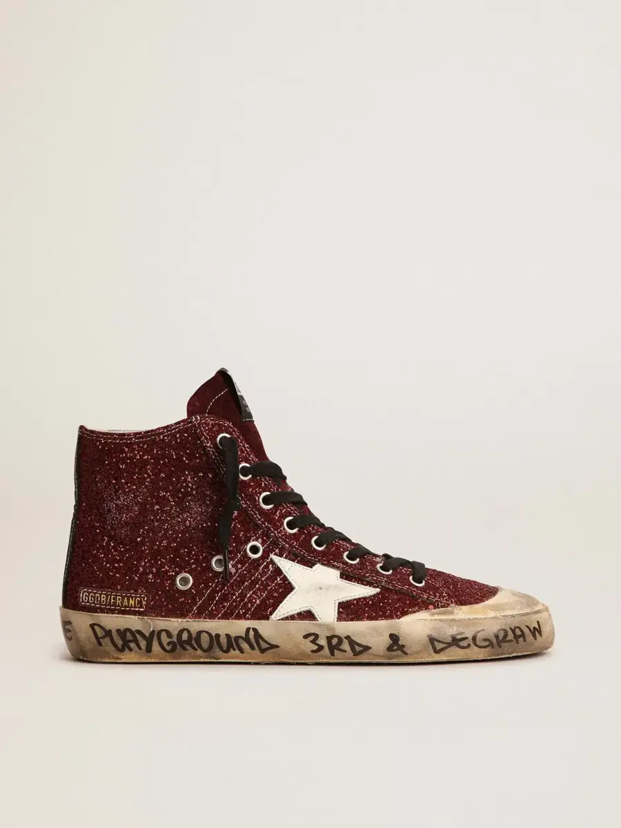 - Burgundy glitter upper