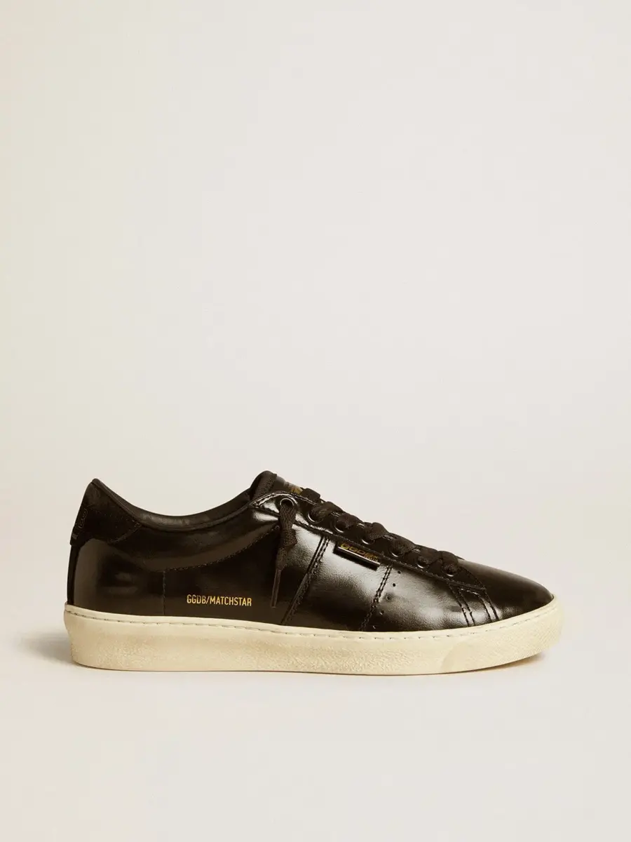 Un homenaje a la época dorada del tenis de los años 70. Nuestro modelo Matchstar es un escenario de sueños y estilo en constante evolución. Con un acabado desgastado, este modelo para mujer con parte superior de piel negra cuenta con una lengüeta de ante negro en el talón con las letras GGDB en color dorado. Los cordones negros le dan el toque final.
