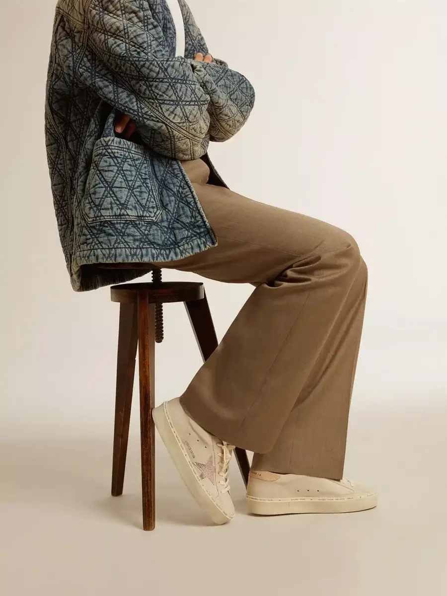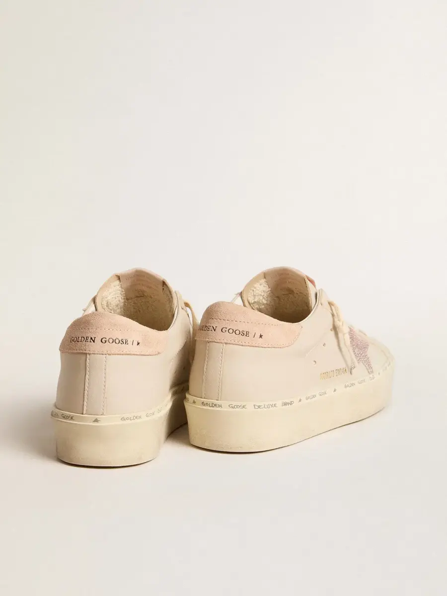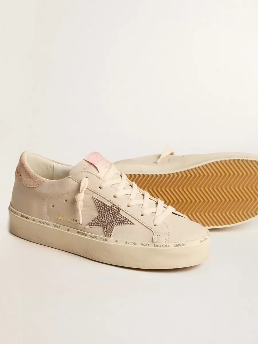 Doble altura y diseño icónico: inspiradas en nuestras zapatillas Super-Star, las zapatillas Hi Star cuentan con doble ribete, adornado con letras escritas a mano. Este modelo de piel napa beige cuenta con una estrella de ante rosa pálido adornada con cristales Swarovski rosas y una lengüeta de ante rosa antiguo en el talón. Los cordones beige añaden el toque final.