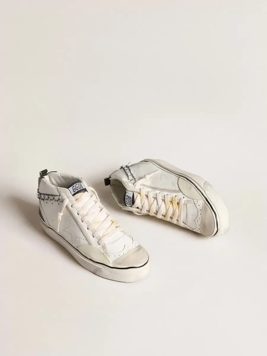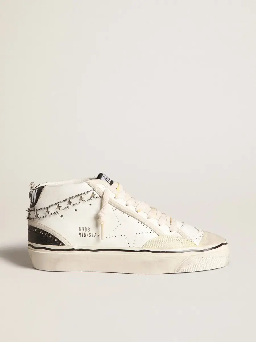 Versatilidad única y elegante: las zapatillas Mid Star adoptan un enfoque refinado de su inspiración en la escena del skate de los noventa. Este modelo LAB con parte superior de piel blanca presenta una estrella perforada tono sobre tono y un flash con estrellas recortadas y hilos deshilachados negros. La lengüeta del talón de piel negra, la inserción de piel negra con efecto vintage en la parte trasera, la puntera de ante blanco roto y los cordones blancos con efecto amarillento completan el look.