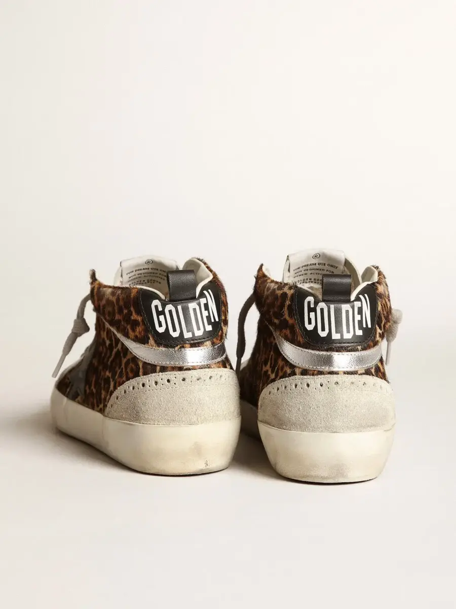 Versatilidad única y elegante: las zapatillas Mid Star aportan un toque refinado a su inspiración en la escena skater de los noventa. En este modelo, la parte superior de piel de potro con estampado de leopardo en tonos beige y marrón presenta una estrella y una lengüeta en el talón de piel negra y un detalle laminado plateado. Las inserciones de ante gris hielo, los detalles brogue y los cordones gris hielo añaden el toque final.