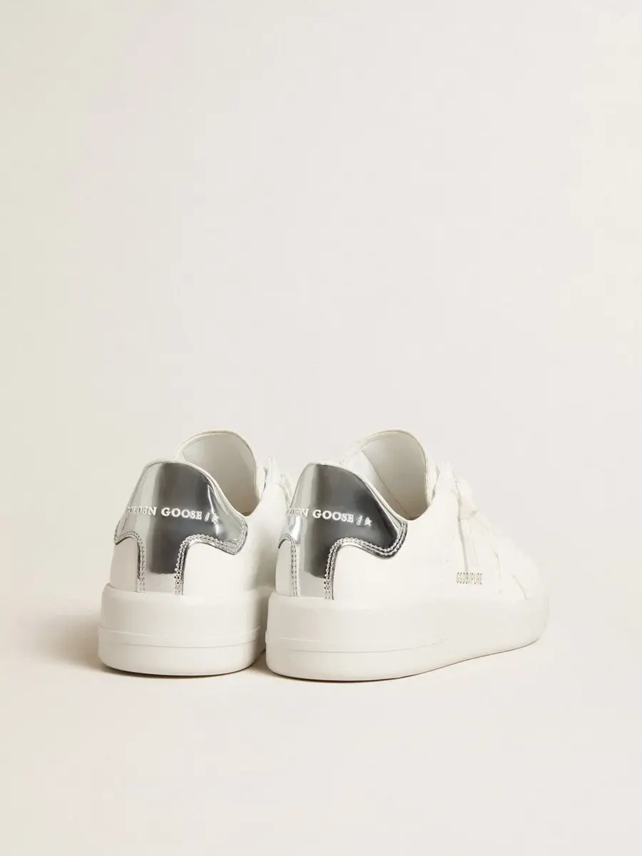 Cuando el minimalismo de la forma se une a la fuerza de los detalles: nuestras zapatillas Purestar combinan un estilo discreto con una comodidad extrema gracias a su tecnología de absorción de impactos. Este modelo para mujer, con una parte superior de origen biológico en blanco óptico, presenta una estrella tono sobre tono y una lengüeta en el talón de cuero metalizado plateado con efecto espejo. Los cordones blancos completan el look.