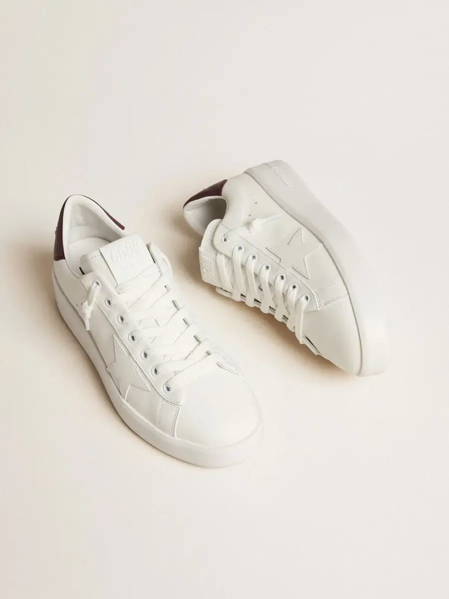 Cuando el minimalismo de la forma se une a la fuerza de los detalles: nuestras zapatillas Purestar combinan un estilo discreto con una comodidad extrema gracias a su tecnología de absorción de impactos. Confeccionado en piel blanca, este modelo cuenta con una estrella de piel blanca y una lengüeta de piel ciruela en el talón. Los cordones blancos completan el look.