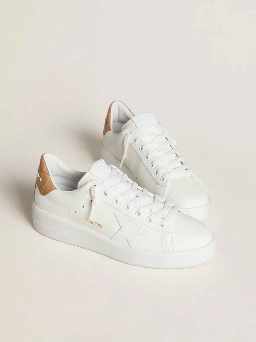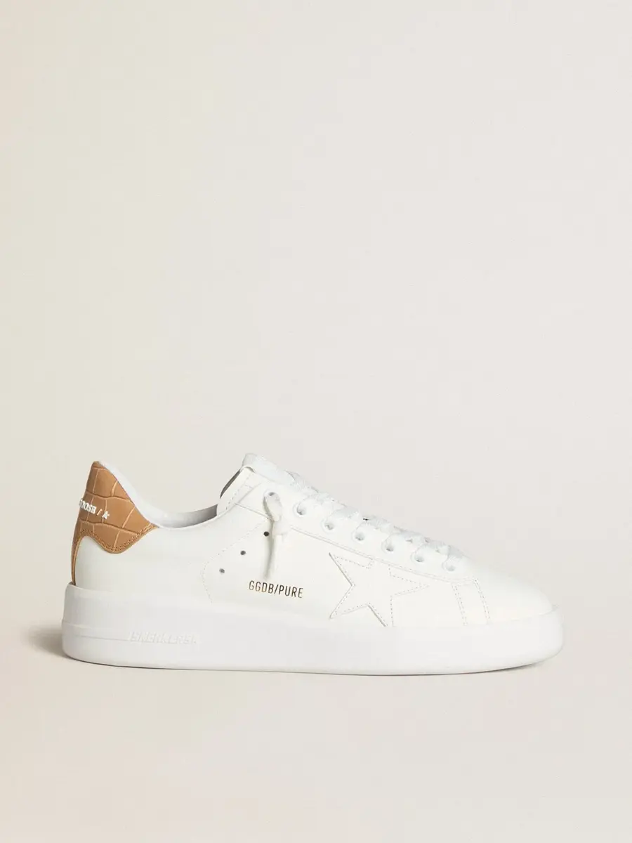 Cuando el minimalismo de la forma se une a la fuerza de los detalles: nuestras zapatillas Purestar combinan un estilo discreto con una comodidad extrema gracias a su tecnología de amortiguación. Este modelo para mujer, confeccionado en piel blanca, presenta una estrella de piel blanca y una lengüeta en el talón de piel con estampado de cocodrilo en color beige. Los cordones blancos completan el look.