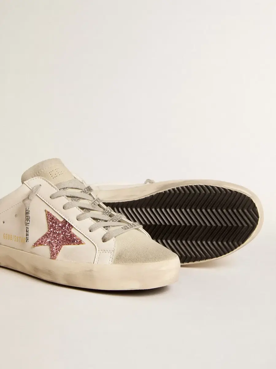 Nuestras icónicas zapatillas en versión sabot: estas Super-Star cuentan con la clásica parte superior blanca de origen biológico y una estrella rosa brillante. La lengüeta y la puntera de ante gris hielo y los cordones gris hielo con el logotipo negro en contraste completan el look.