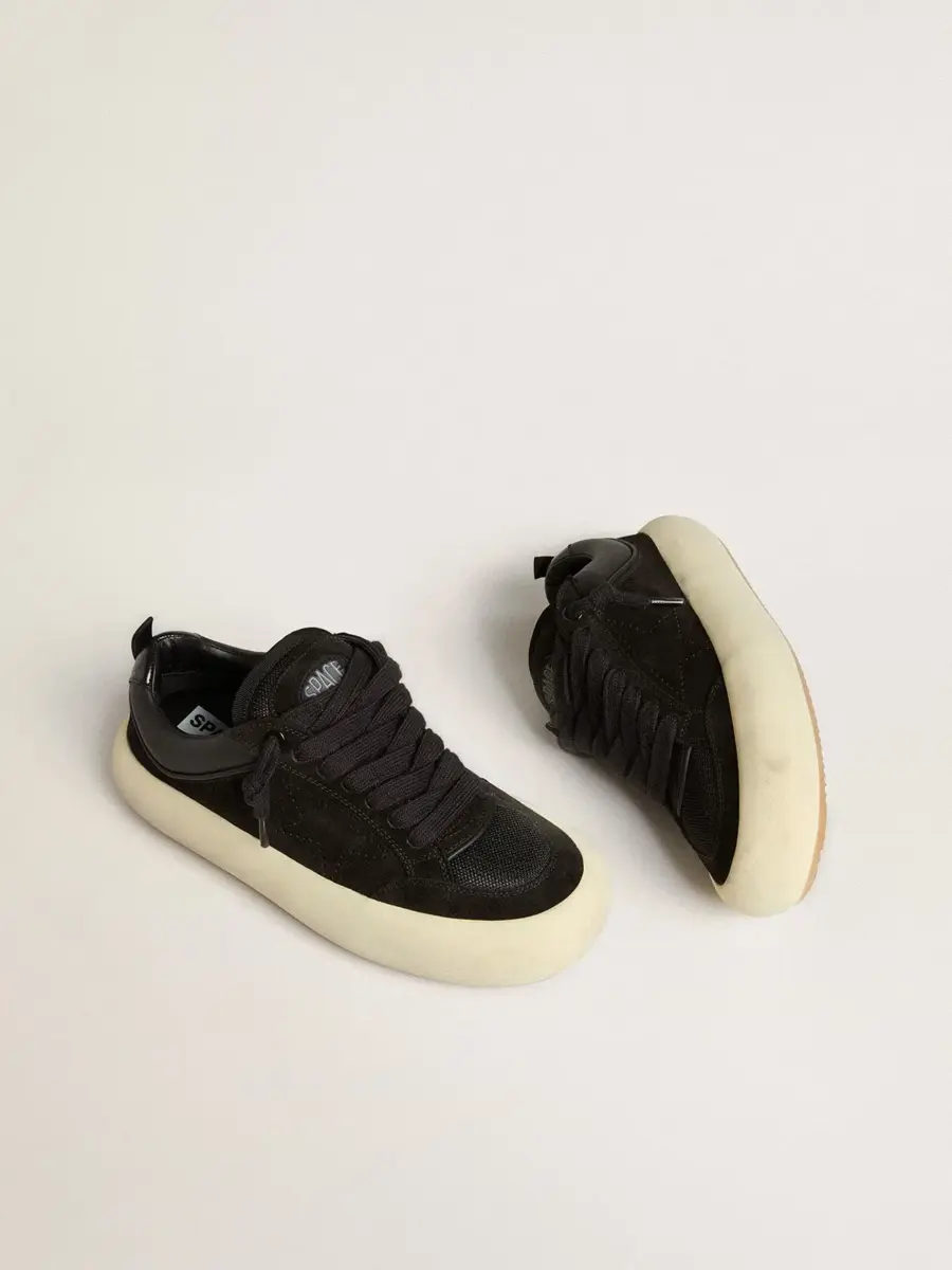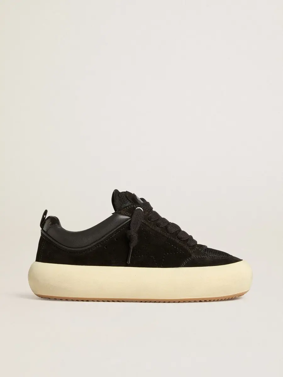 Tu nuevo momento para desconectar de la realidad y encontrar tu centro. Tu nueva forma de volver a ti misma y respirar tu propia ligereza, volando como nunca antes. Las cómodas zapatillas Space-Star Cube cuentan con una suela extra acolchada y una plantilla rellena de espuma viscoelástica, lo que garantiza una comodidad sin igual desde el primer paso. Este modelo para mujer, forrado en piel suave y con lengüeta acolchada, presenta una parte superior de ante negro acentuada con una estrella perforada tono sobre tono y una lengüeta en el talón de piel metalizada negra. Los detalles de malla negra y los cordones gruesos de algodón negro completan el look.