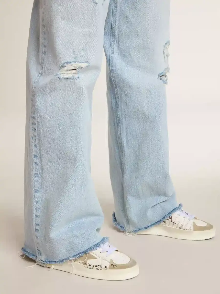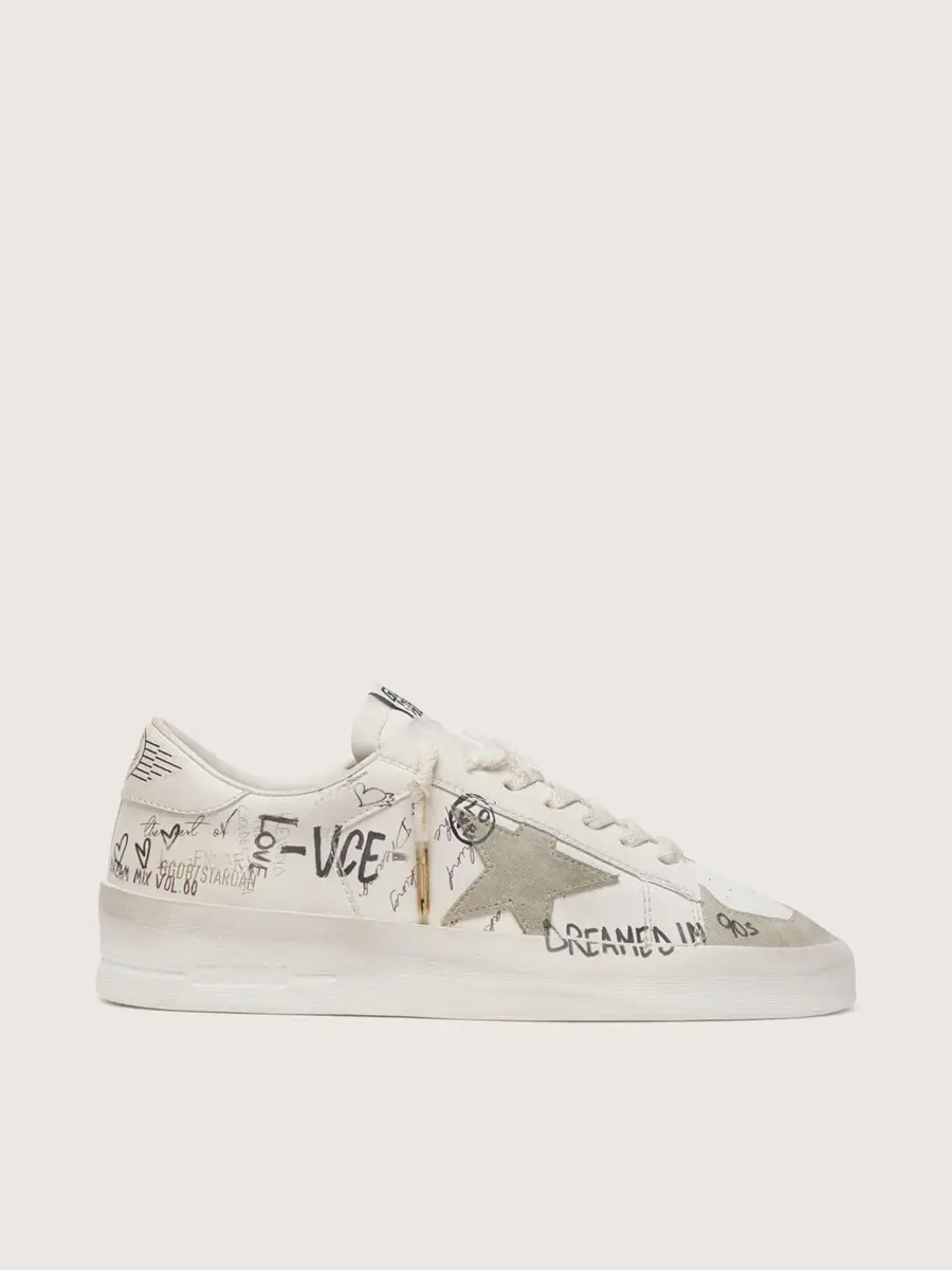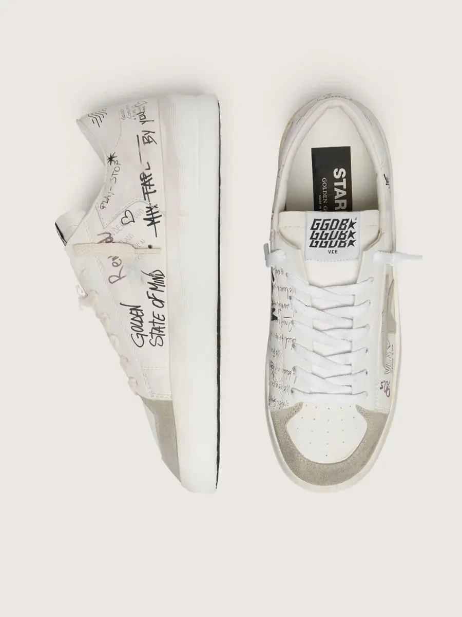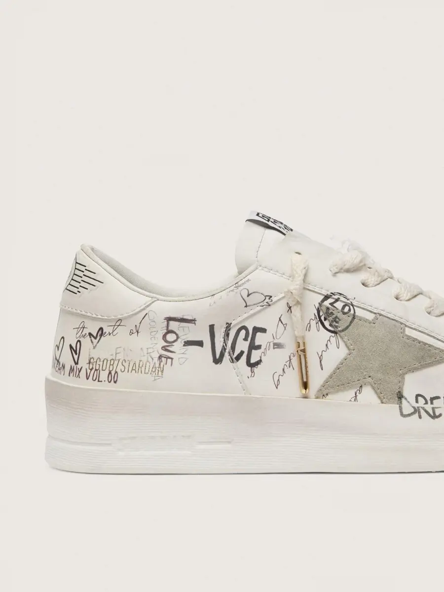 Stardan con estrella y puntera de ante beige y letras y motivos por toda la superficie