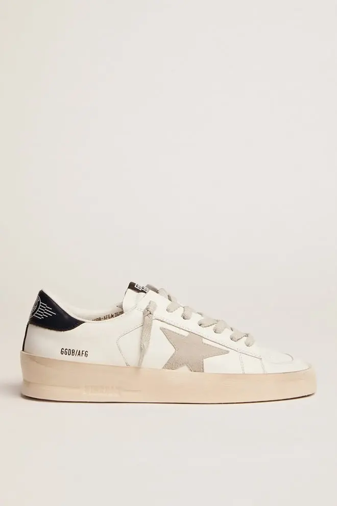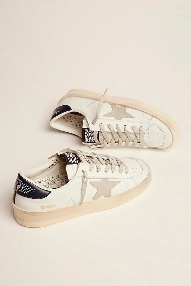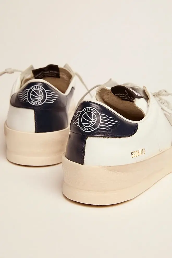 Los gloriosos años noventa plasmados en unas zapatillas. Las zapatillas Stardan rinden homenaje a los iconos del baloncesto de esa década, sin perder de vista el presente. Esta versión para mujer con parte superior de piel blanca cuenta con una estrella de ante gris hielo y una lengüeta azul brillante en el talón. El inserto asimétrico de piel azul brillante en la parte trasera y los cordones gris hielo añaden el toque final.