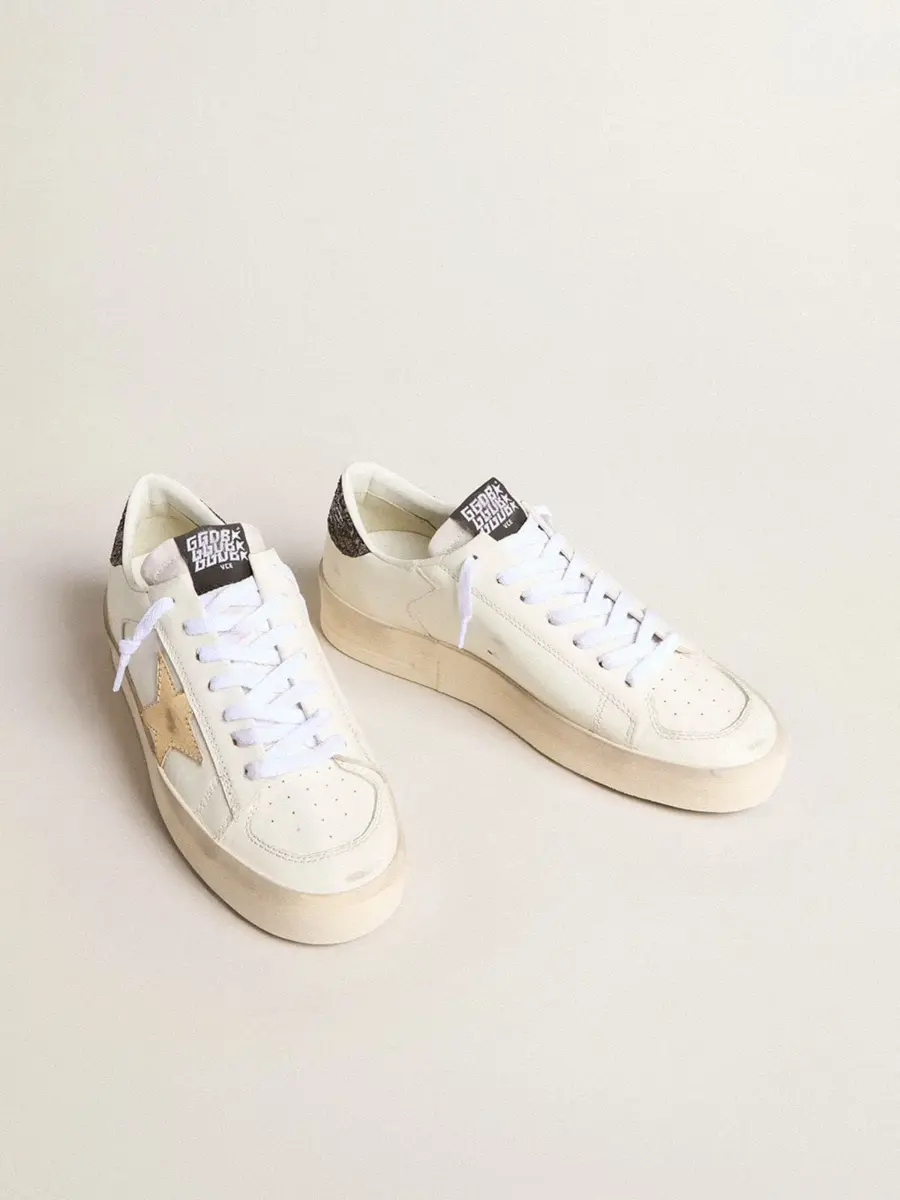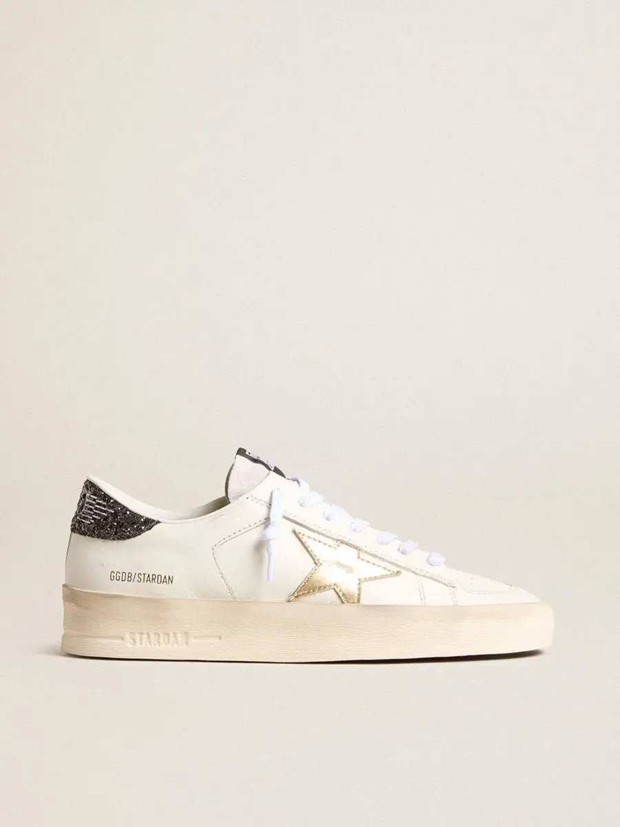 Los gloriosos años noventa plasmados en unas zapatillas. Las zapatillas Stardan rinden homenaje a los iconos del baloncesto de esa década, sin perder de vista el presente. Esta versión con parte superior de piel blanca cuenta con una estrella de piel metalizada dorada y una lengüeta negra con purpurina en el talón. Los cordones blancos añaden el toque final.