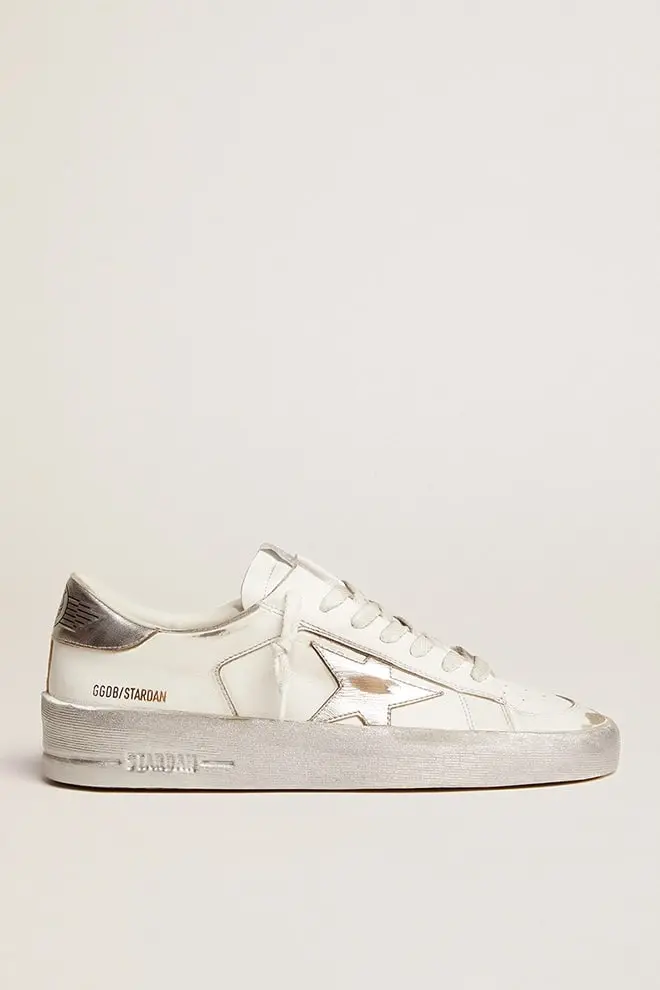Los gloriosos años noventa plasmados en unas zapatillas. Las zapatillas Stardan rinden homenaje a los iconos del baloncesto de esa década, sin perder de vista el presente. Esta versión con parte superior de piel blanca cuenta con una estrella y una lengüeta en el talón de piel metalizada plateada. El inserto asimétrico en la parte trasera de piel metalizada plateada, el ribete plateado y los cordones blancos añaden el toque final.