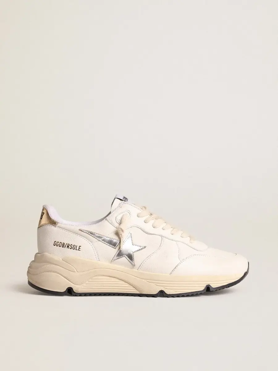 Suela Running en napa con estrella plateada y lengüeta de cuero dorada en el talón