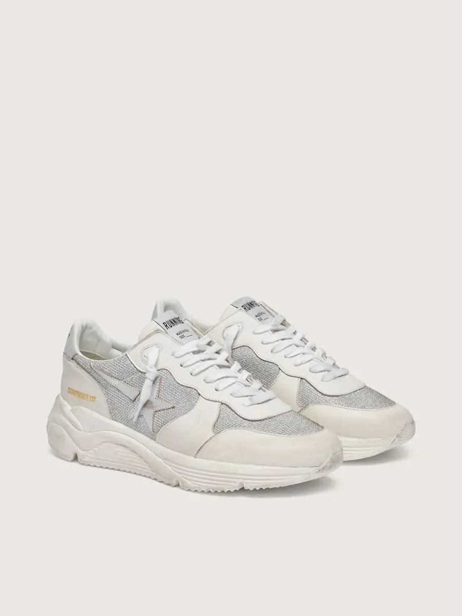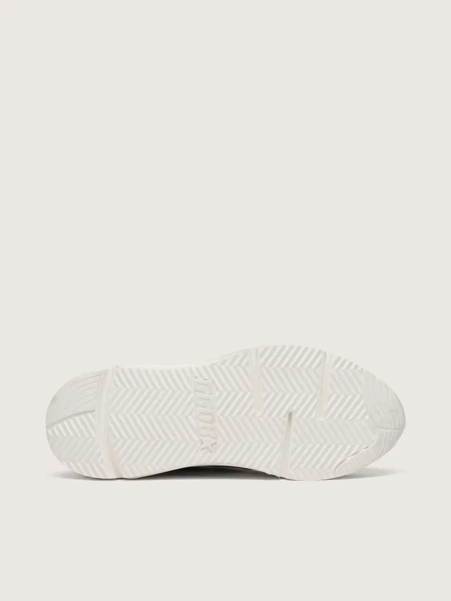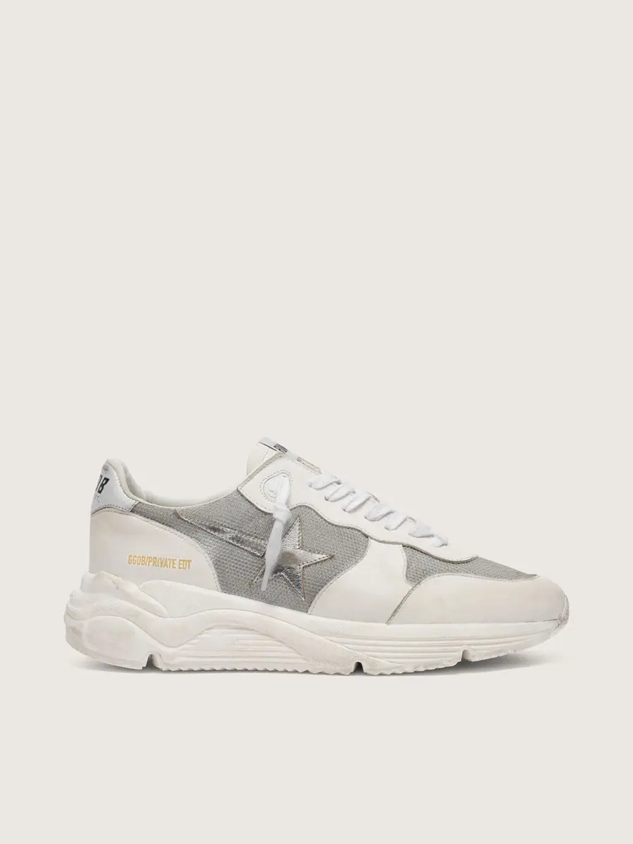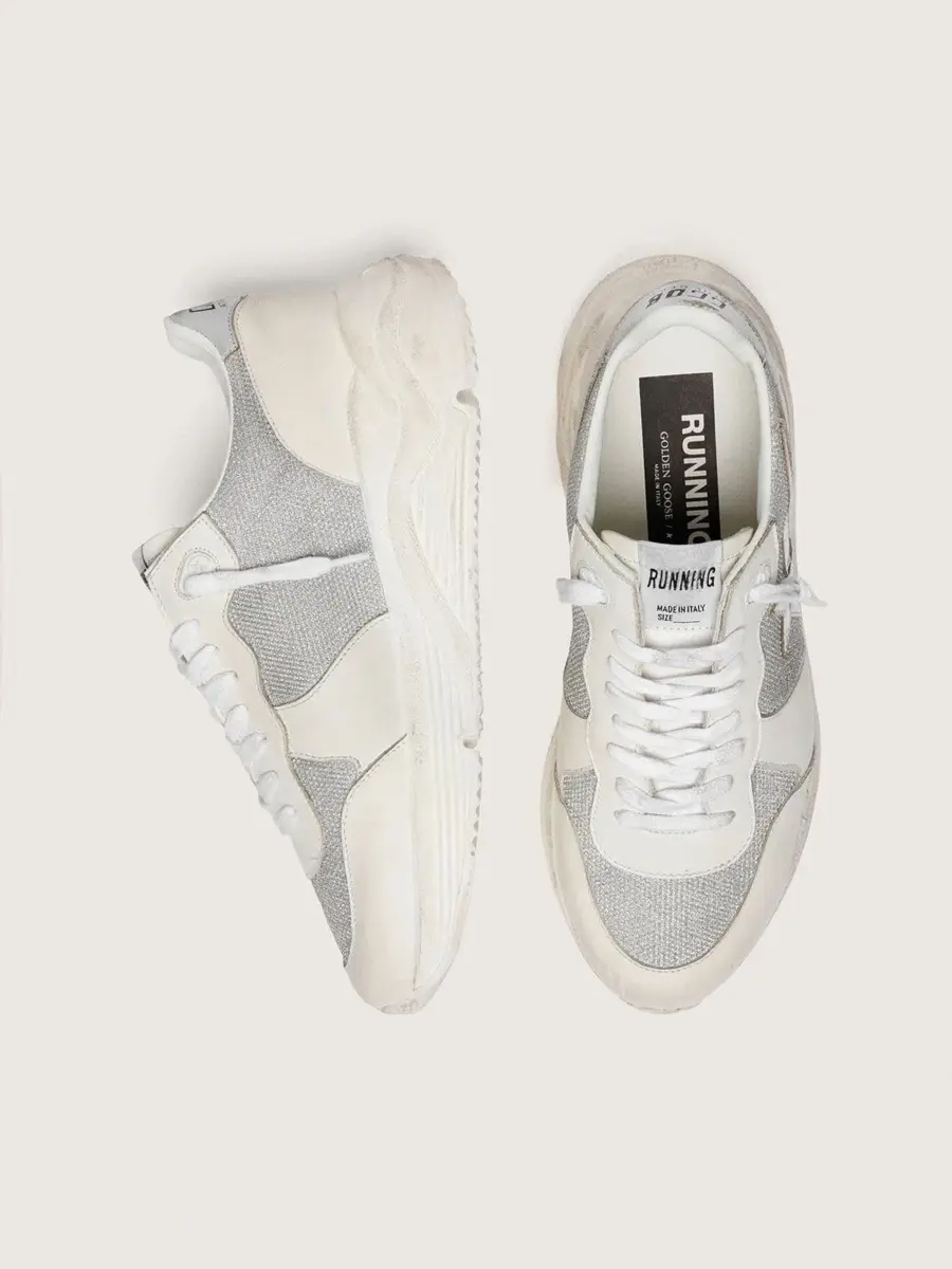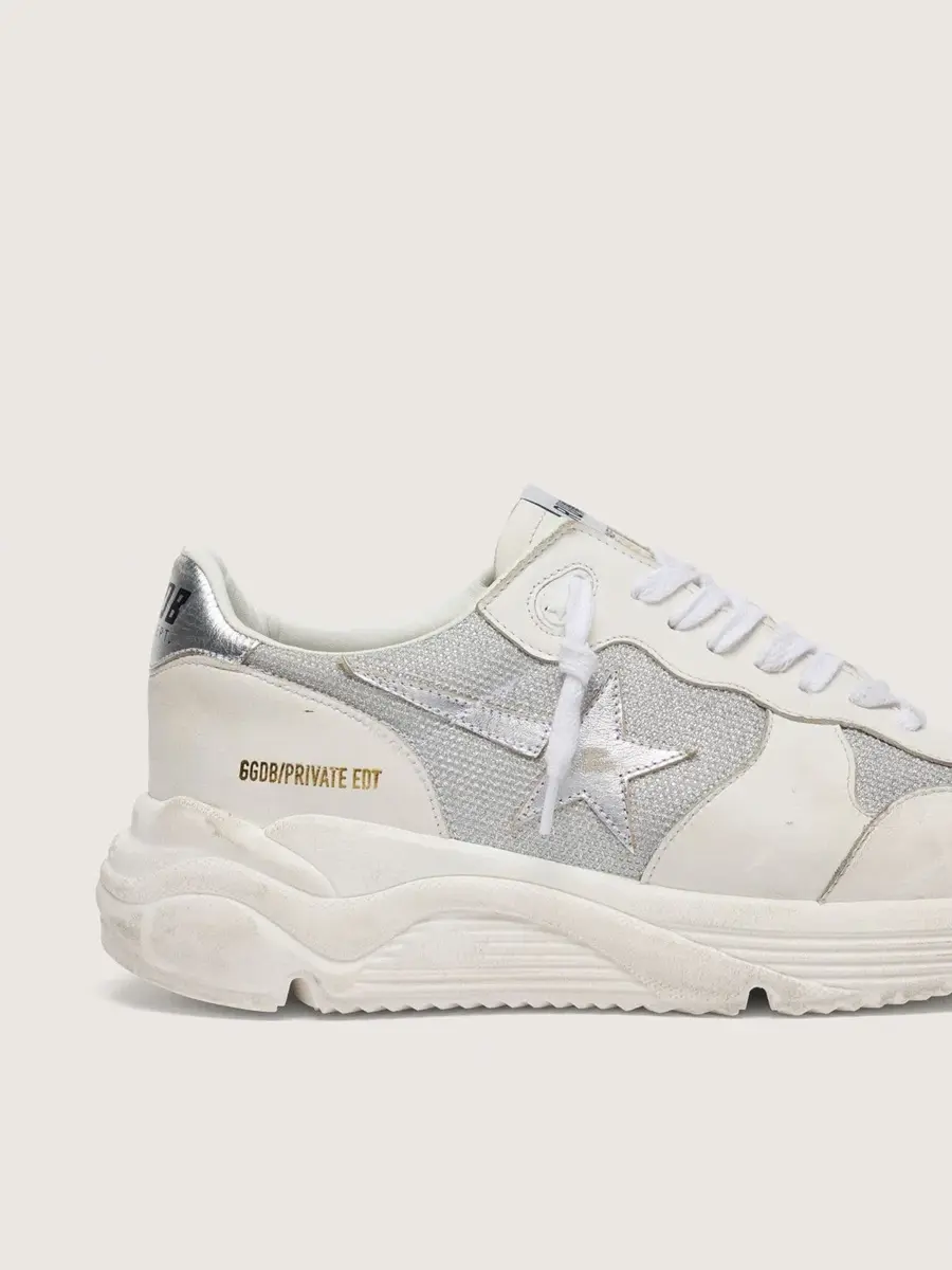 El estilo urbano y el espíritu artesanal se combinan en nuestras zapatillas Running Sole: la compañera ideal para tus aventuras metropolitanas. Este modelo para mujer presenta una parte superior de malla blanca y nubuck, acentuada por una estrella y una lengüeta en el talón de piel metalizada plateada. Los cordones de color blanco óptico añaden el toque final.