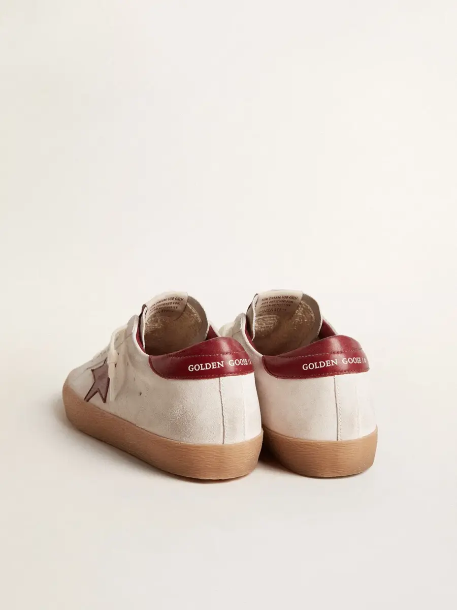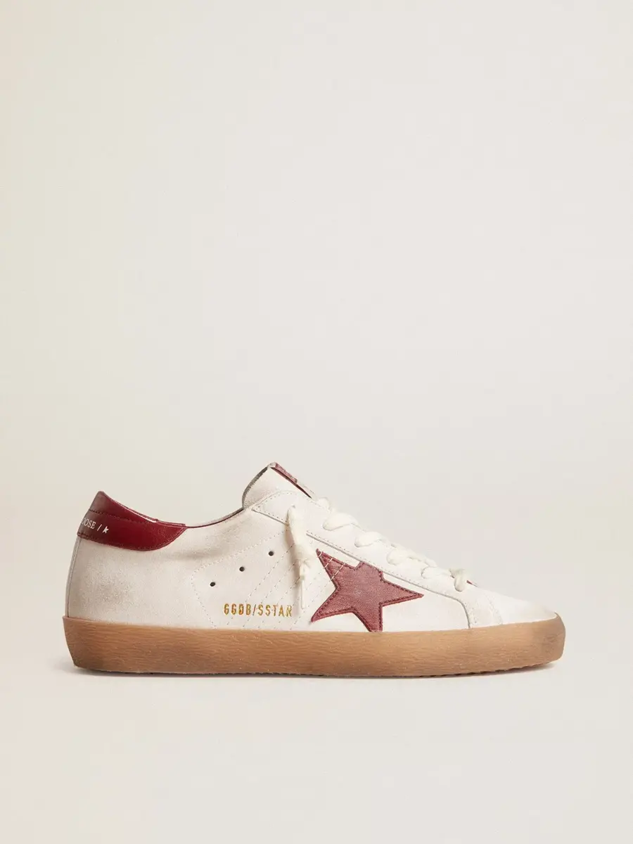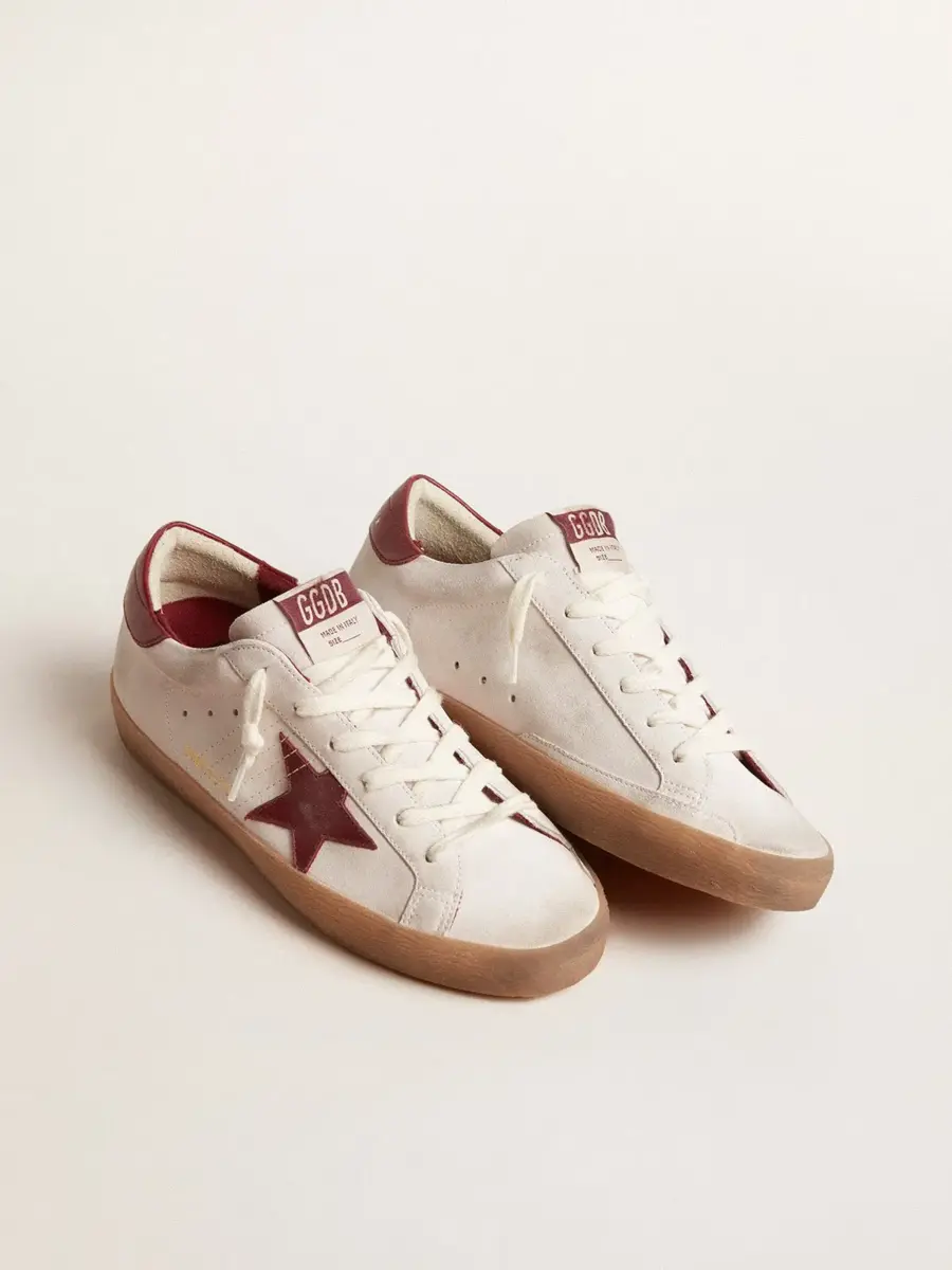 Un icono atemporal, pero en constante evolución. En Golden, nos encanta tomar nuestros clásicos y reelaborarlos constantemente, siempre desde un nuevo ángulo. Estas Super-Star con parte superior de ante blanco cuentan con una estrella y una lengüeta en el talón de cuero burdeos. Y los cordones blancos añaden el toque final.