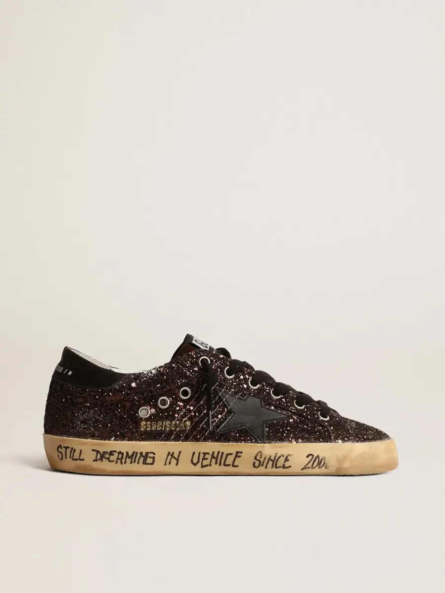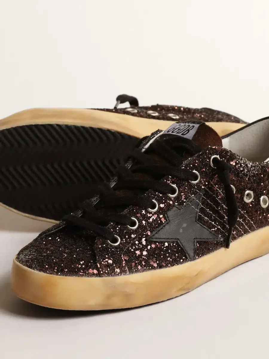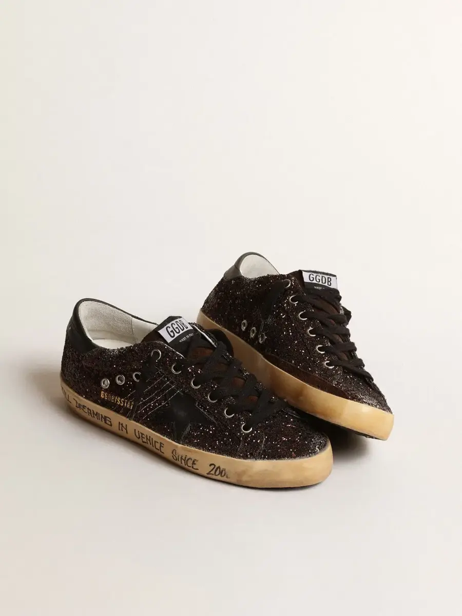 Super-Star en marrón brillante con estrella y lengüeta del talón en piel negra