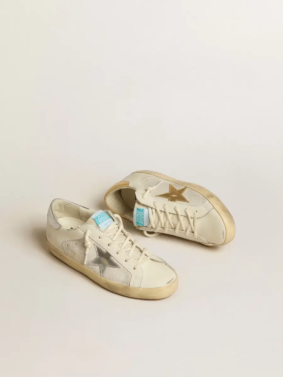Super-Star en piel y ante blancos con estrella de piel plateada y dorada