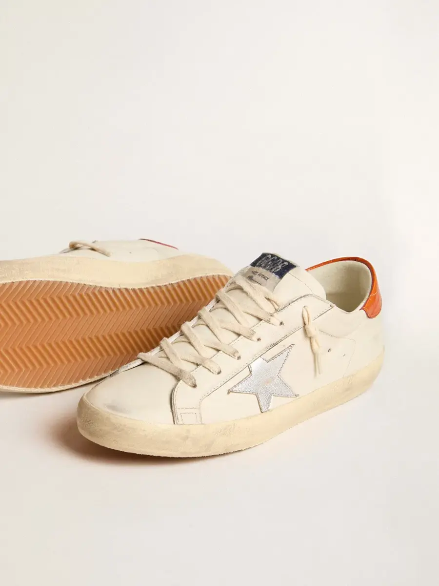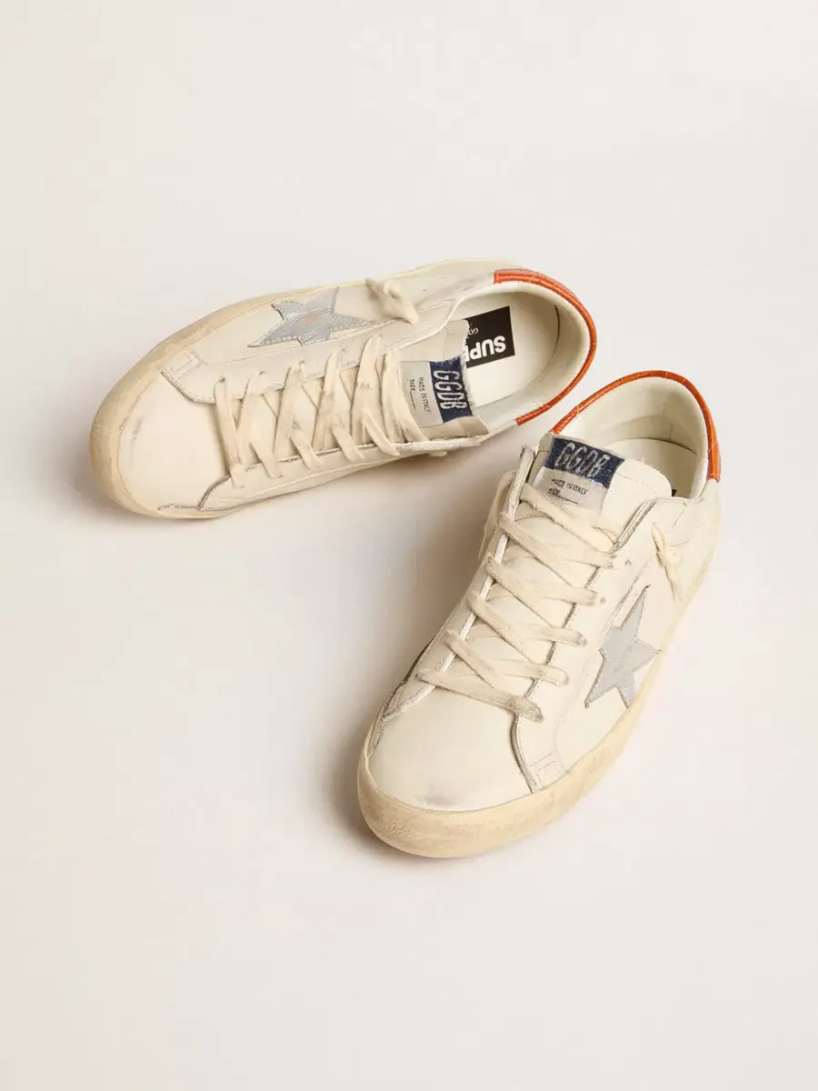 Un icono atemporal, pero en constante evolución. En Golden nos encanta retocar nuestros clásicos y renovarlos constantemente, siempre desde un nuevo punto de vista. Estas Super-Star con parte superior de piel blanca cuentan con una estrella de piel metalizada plateada y una lengüeta en el talón de piel naranja con estampado de cocodrilo. Los cordones blancos añaden el toque final.