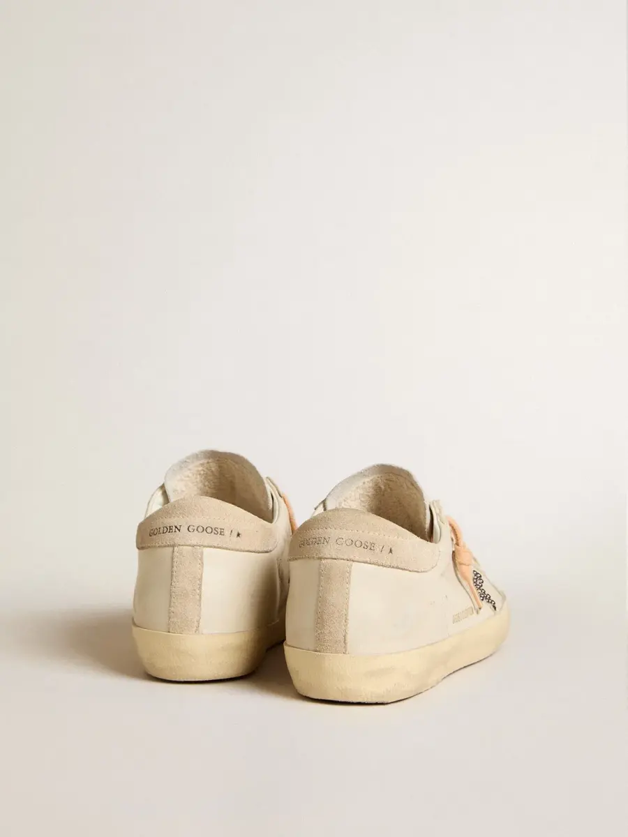 Un icono atemporal, pero en constante evolución. En Golden, nos encanta tomar nuestros clásicos y reelaborarlos constantemente, siempre desde un nuevo ángulo. Estas Super-Star cuentan con una estrella de ante beige adornada con tachuelas Swarovski plateadas, y una lengüeta e inserciones de ante beige en la parte superior de cuero blanco. Los cordones rosa melocotón añaden el toque final.