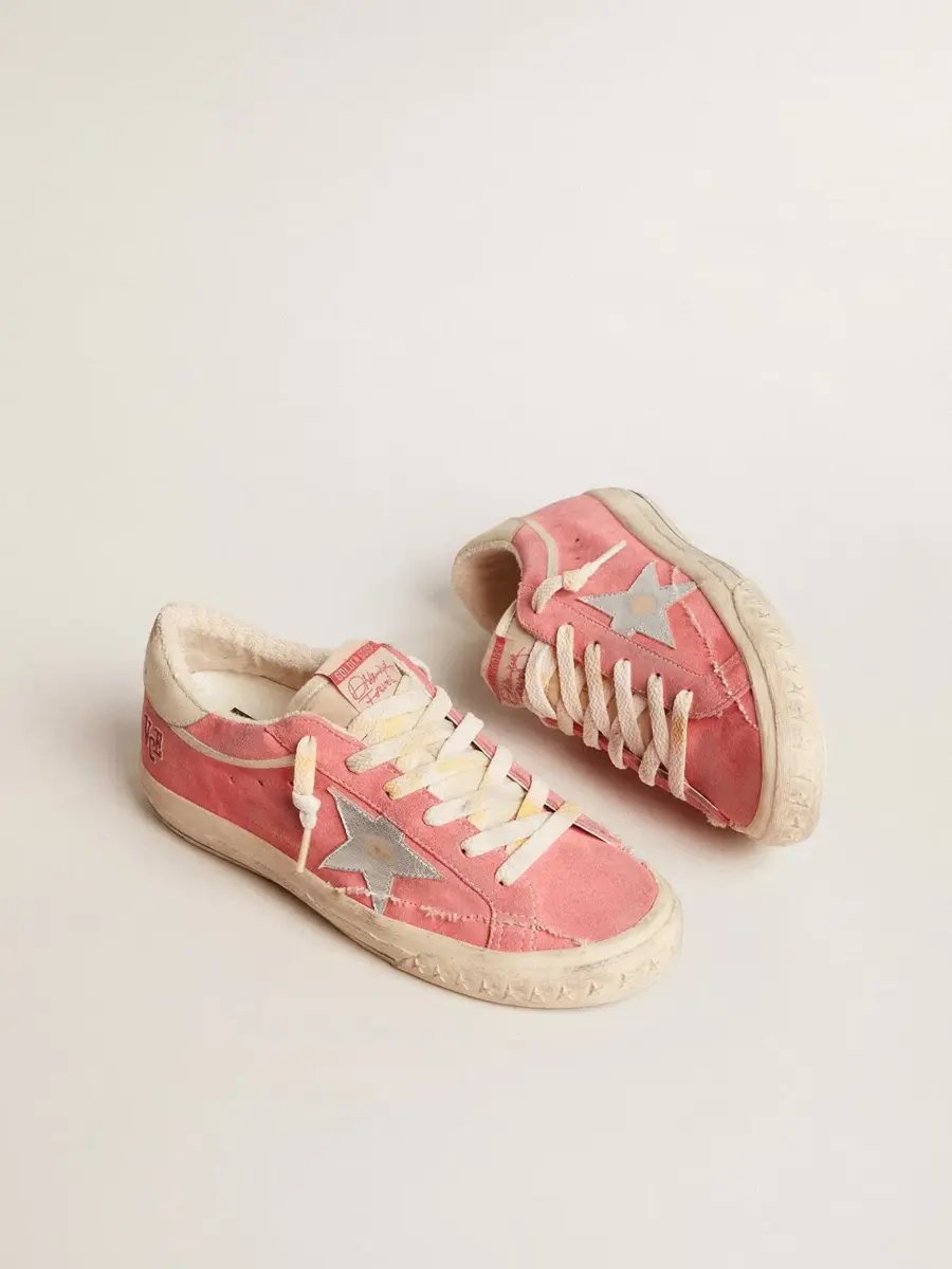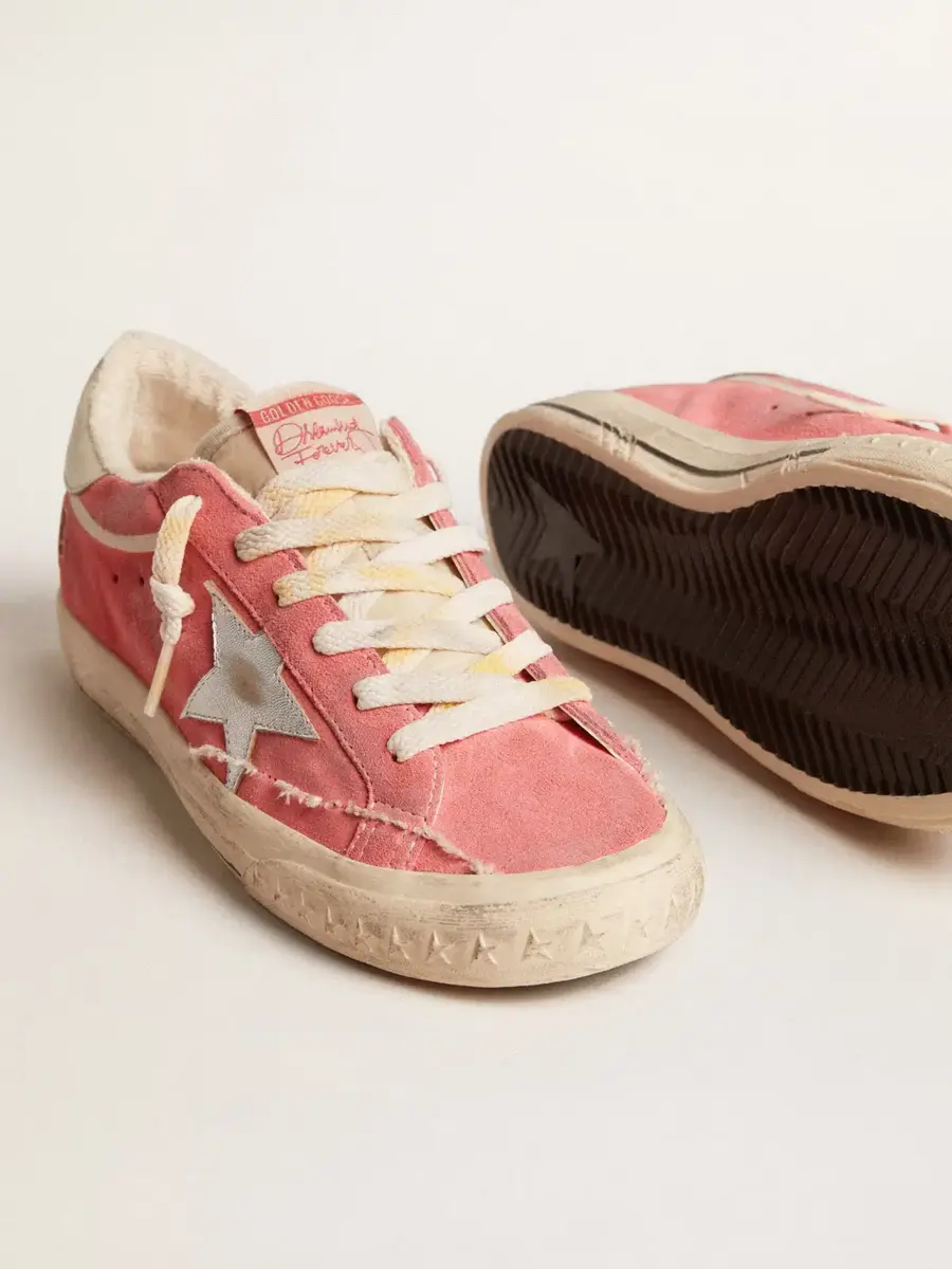 Un icono atemporal, pero en constante evolución. En Golden, nos encanta retocar nuestros clásicos constantemente, siempre desde un nuevo ángulo. Estas Super-Star con parte superior de ante rojo cuentan con una estrella de cuero metalizado plateado y una lengüeta de cuero beige en el talón. Las letras bordadas en rojo y beige en la parte trasera, las costuras beige con efecto deshilachado y los cordones blancos con efecto amarillento añaden el toque final.