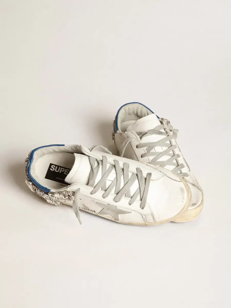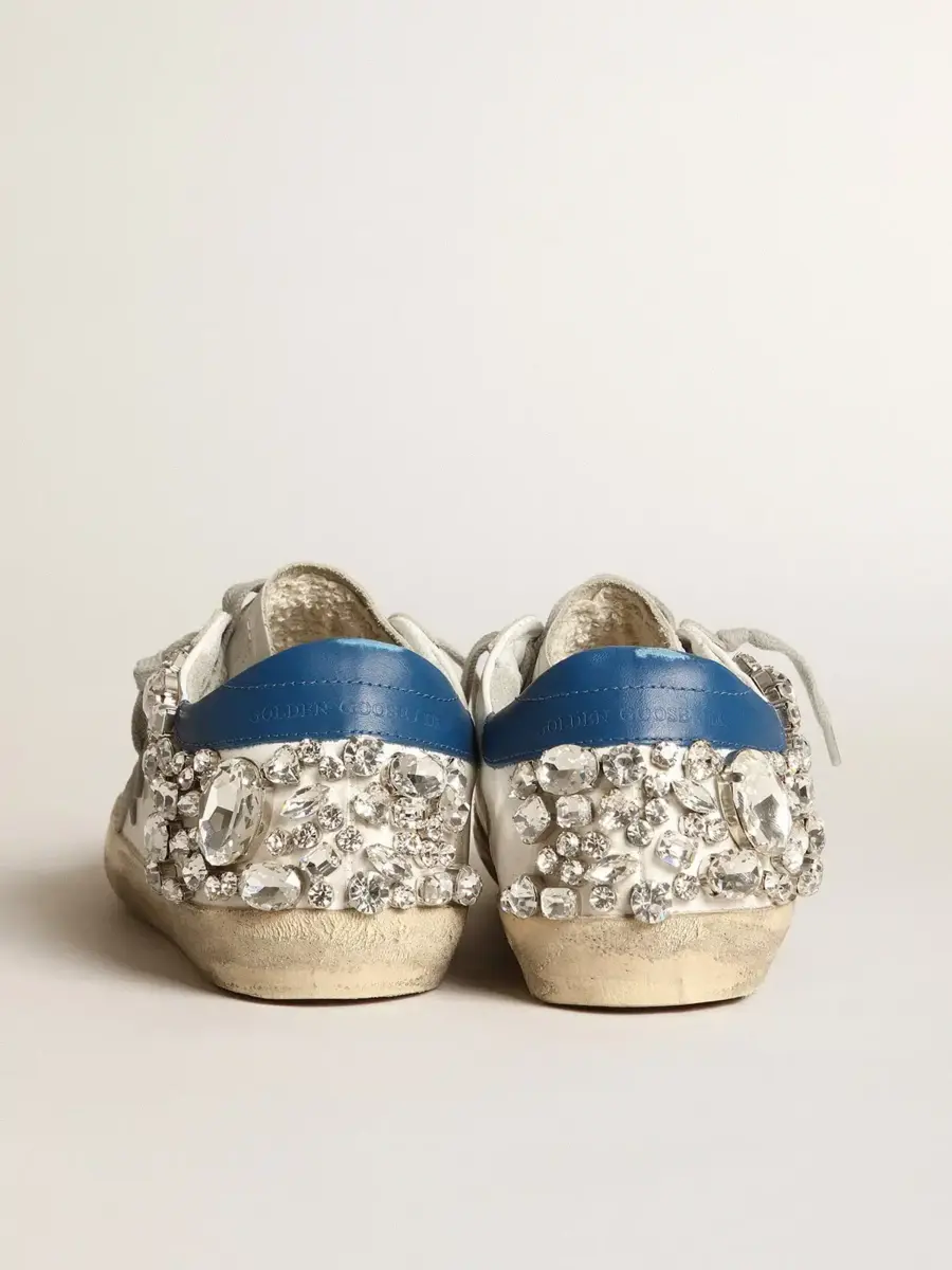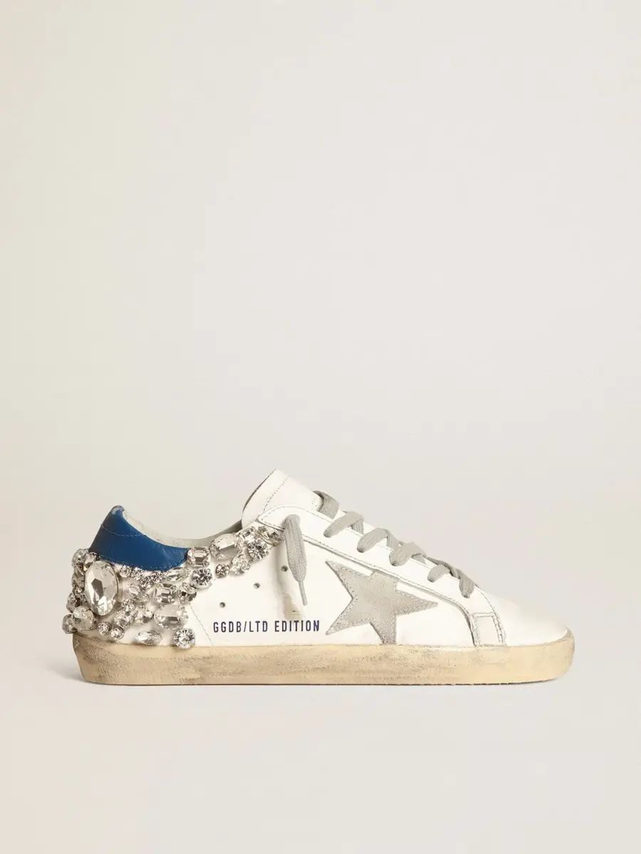 Un icono atemporal, pero en constante evolución. En Golden, nos encanta tomar nuestros clásicos y reelaborarlos constantemente, siempre desde un nuevo ángulo. Estas Super-Star con parte superior de piel blanca cuentan con una estrella en ante gris hielo y una lengüeta en el talón decorada con piedras Swarovski. Los cordones color crema añaden el toque final.