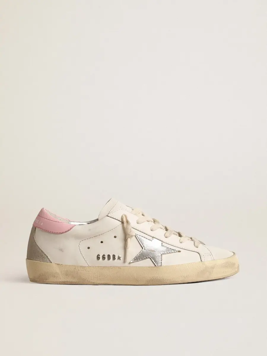 Un icono atemporal, pero en constante evolución. En Golden nos encanta retocar nuestros clásicos constantemente, siempre desde un nuevo ángulo. Estas Super-Star con parte superior de piel blanca cuentan con una estrella de piel metalizada plateada, una lengüeta rosa en el talón y una inserción de ante gris hielo en la parte trasera. Las letras GGDB en metal plateado galvanizado y los cordones blancos añaden el toque final.