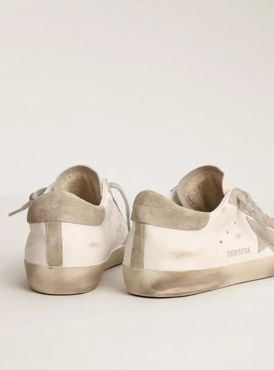 Un icono atemporal, pero en constante evolución. En Golden, nos encanta retocar nuestros clásicos constantemente, siempre desde un nuevo ángulo. Estas Super-Star para mujer con parte superior de cuero blanco cuentan con una estrella y una lengüeta en el talón de ante gris hielo. Los cordones grises añaden el toque final.