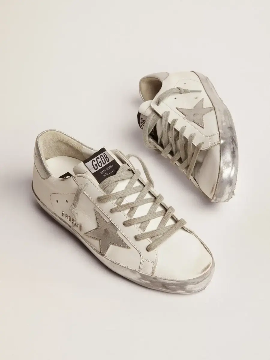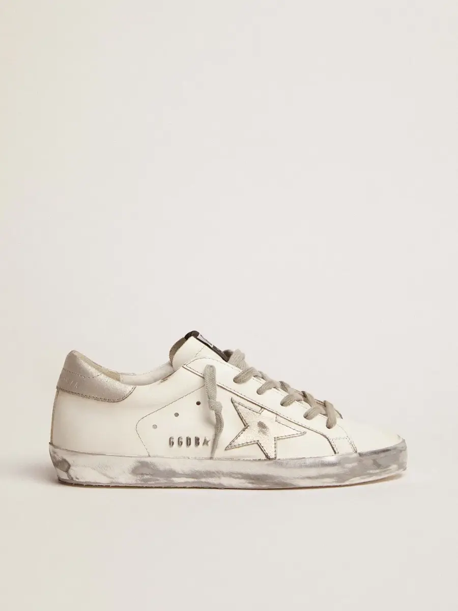 Las zapatillas Super-Star son un clásico de Golden Goose y acompañan a sus colecciones temporada tras temporada, gracias al uso de materiales y acabados innovadores. Los detalles brillantes con ribete plateado, combinados con una estrella GGDB y una lengüeta en el talón a juego, le dan un toque divertido y contemporáneo. Este modelo presenta letras metálicas.