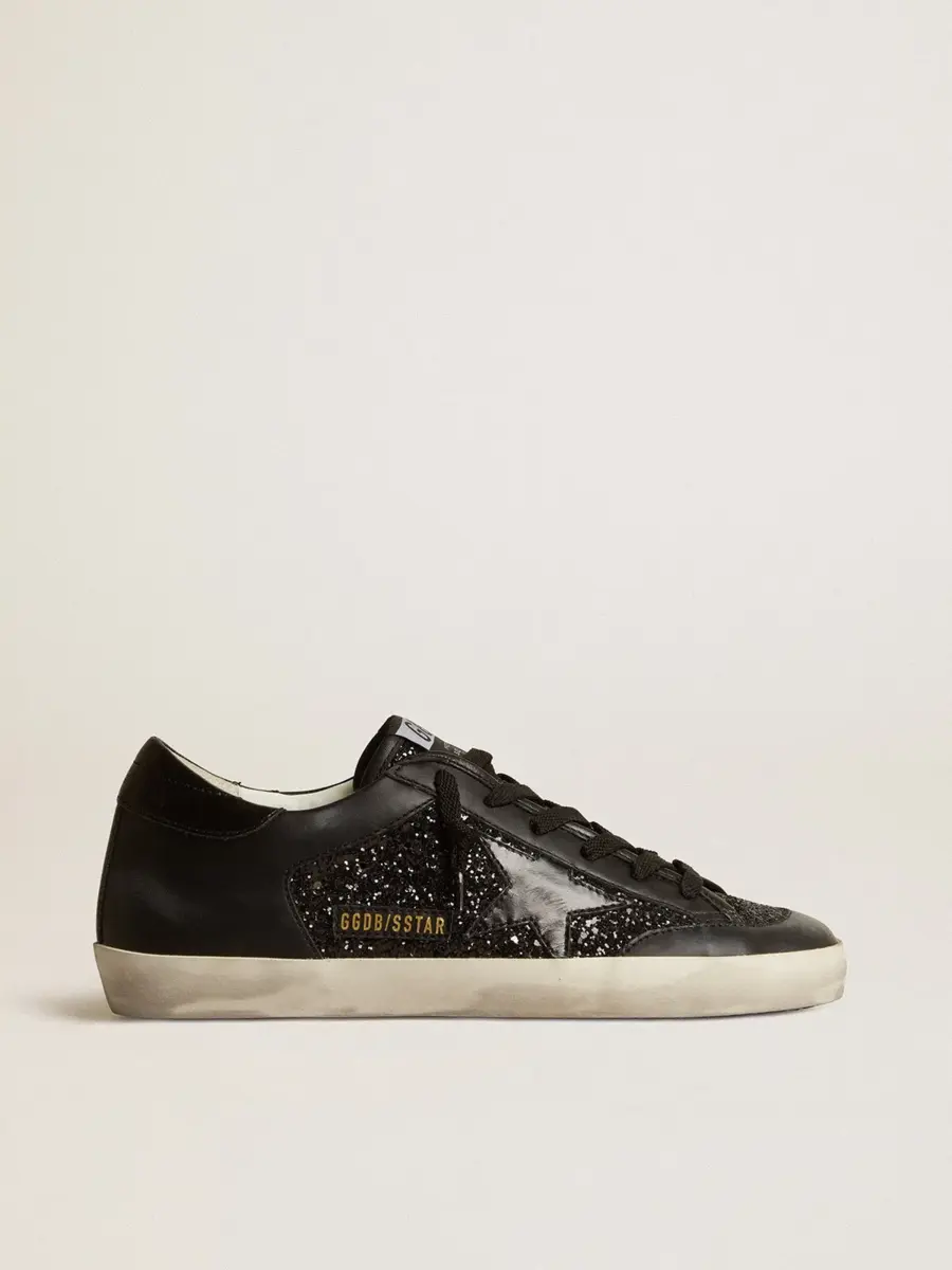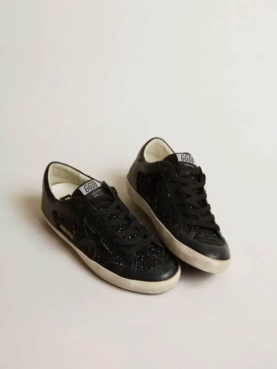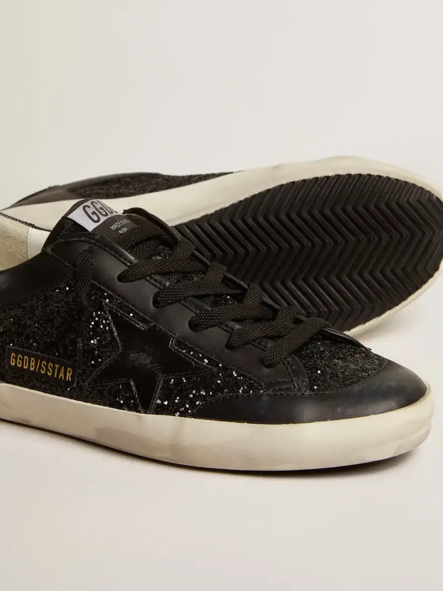 Un icono atemporal, pero en constante evolución. En Golden nos encanta retocar nuestros clásicos constantemente, siempre desde un nuevo ángulo. Estas zapatillas de edición limitada cuentan con una parte superior de napa negra y purpurina, sobre la que destacan la estrella y la lengüeta del talón de cuero negro brillante. Los cordones negros añaden el toque final.