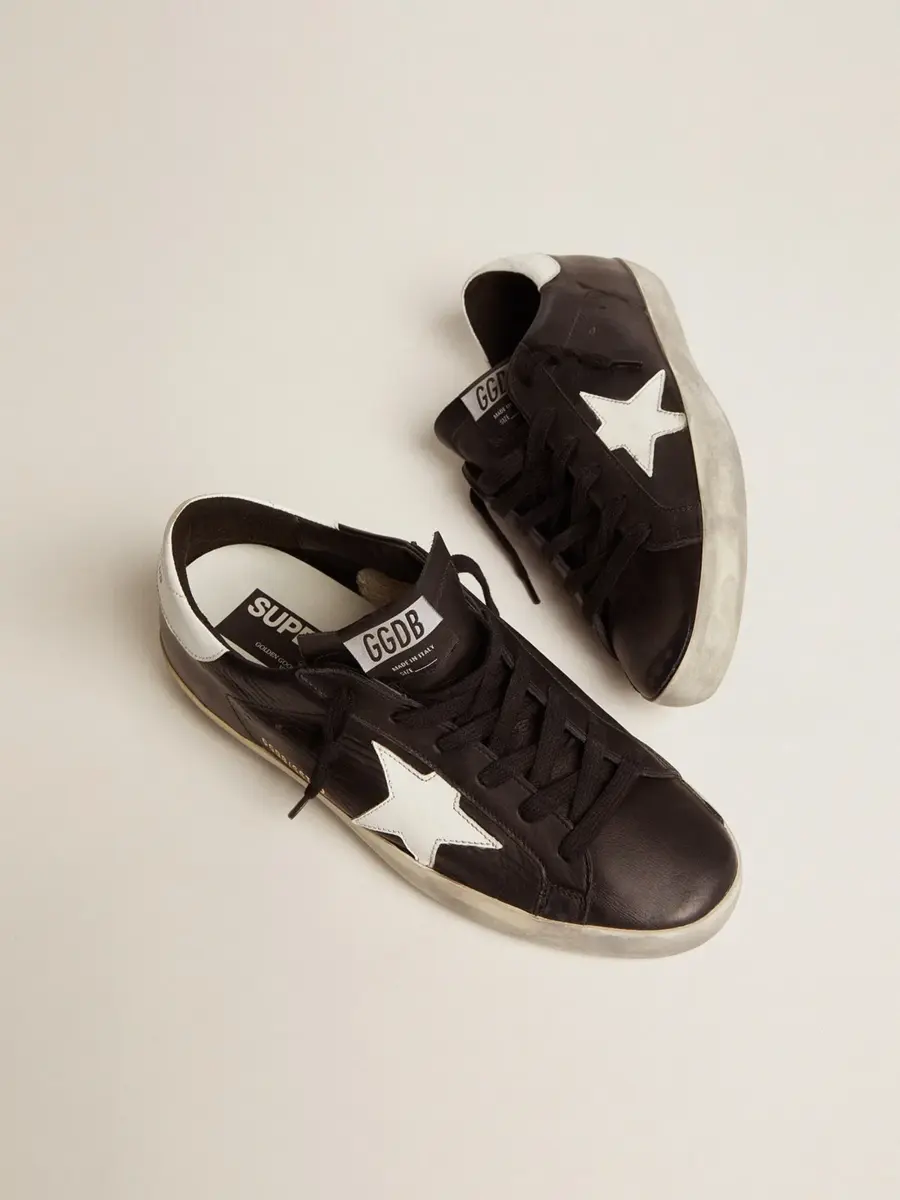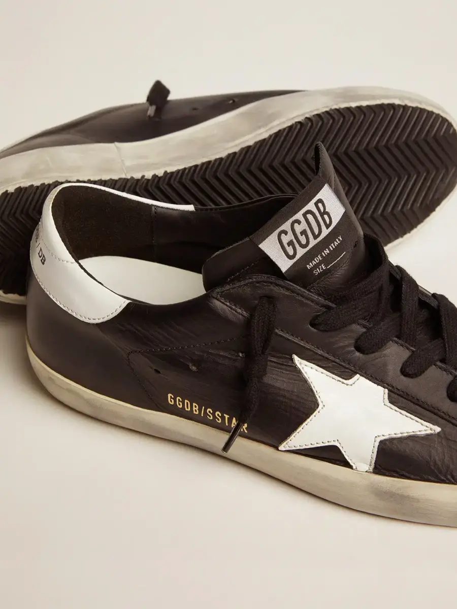 Un icono atemporal, pero en constante evolución. En Golden, nos encanta retocar nuestros clásicos constantemente, siempre desde un nuevo ángulo. Estas Super-Star para mujer, con parte superior de piel negra, cuentan con una estrella y una lengüeta en el talón de piel blanca. Los cordones negros añaden el toque final.
