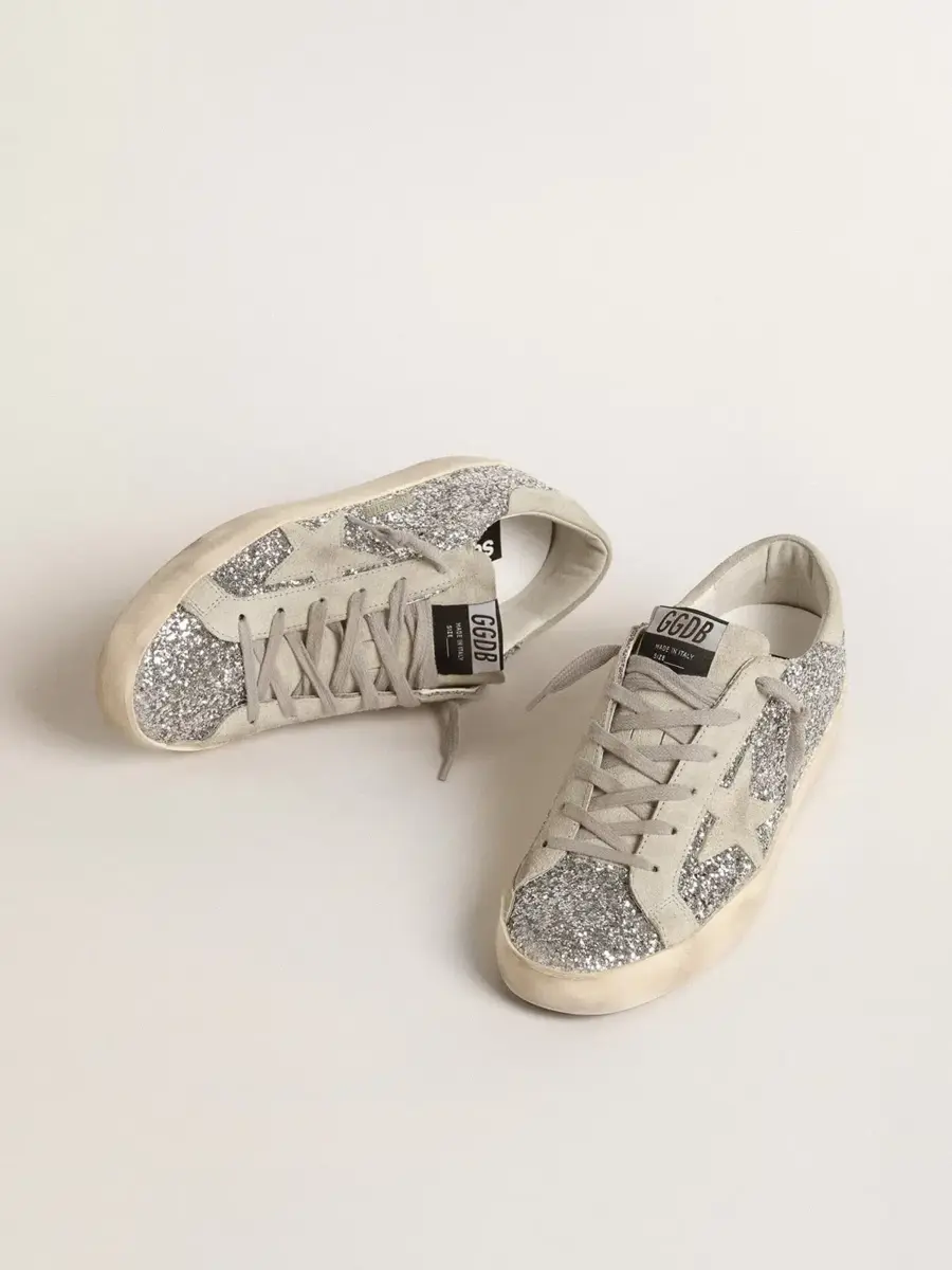 Un icono atemporal, pero en constante evolución. En Golden, nos encanta tomar nuestros clásicos y reelaborarlos constantemente, siempre desde un nuevo ángulo. Con una parte superior plateada brillante, estas Super-Star cuentan con inserciones de ante gris hielo, incluyendo la estrella y la lengüeta del talón. Los cordones gris hielo añaden el toque final.