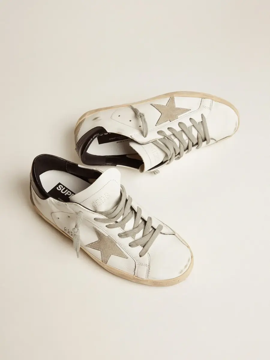 Las zapatillas Super-Star para mujer son un clásico atemporal de Golden Goose y acompañan a sus colecciones temporada tras temporada, gracias al uso de materiales y acabados innovadores. Este modelo de piel de vacuno cuenta con una lengüeta trasera de piel negra, una estrella GGDB de ante y letras metálicas en la parte superior. Acabado vintage icónico.