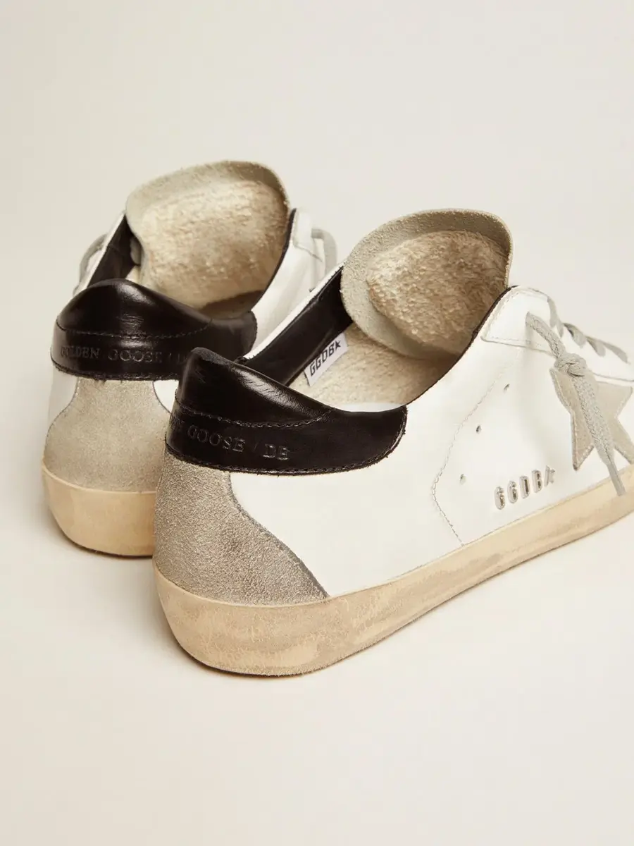 Zapatillas Super-Star para mujer con lengüeta negra en el talón y letras metálicas con tachuelas
