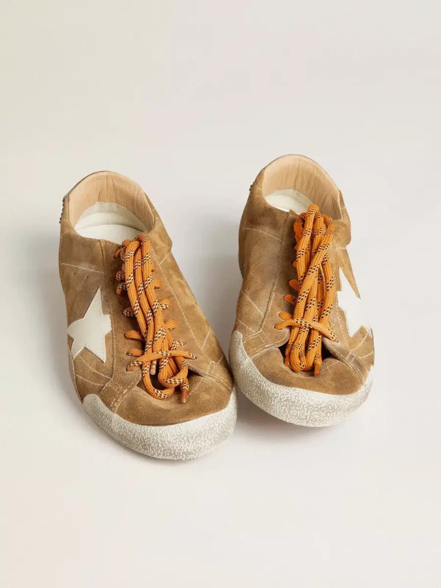 Con sus raíces en la tradición del running de los años 60, las True-Star recuperan el estilo retro y el rendimiento atemporal de las pistas. Este modelo para mujer, con una suave parte superior de ante color tabaco, cuenta con una puntera blanca y una estrella e inserción de cuero blanco en la parte trasera. La lengüeta del talón de cuero laminado color platino y los cordones de dos tonos, rosa y naranja, añaden el toque final. Este modelo True-Star incluye un cordón doble adicional con el que puedes probar nuevas combinaciones de estilo.