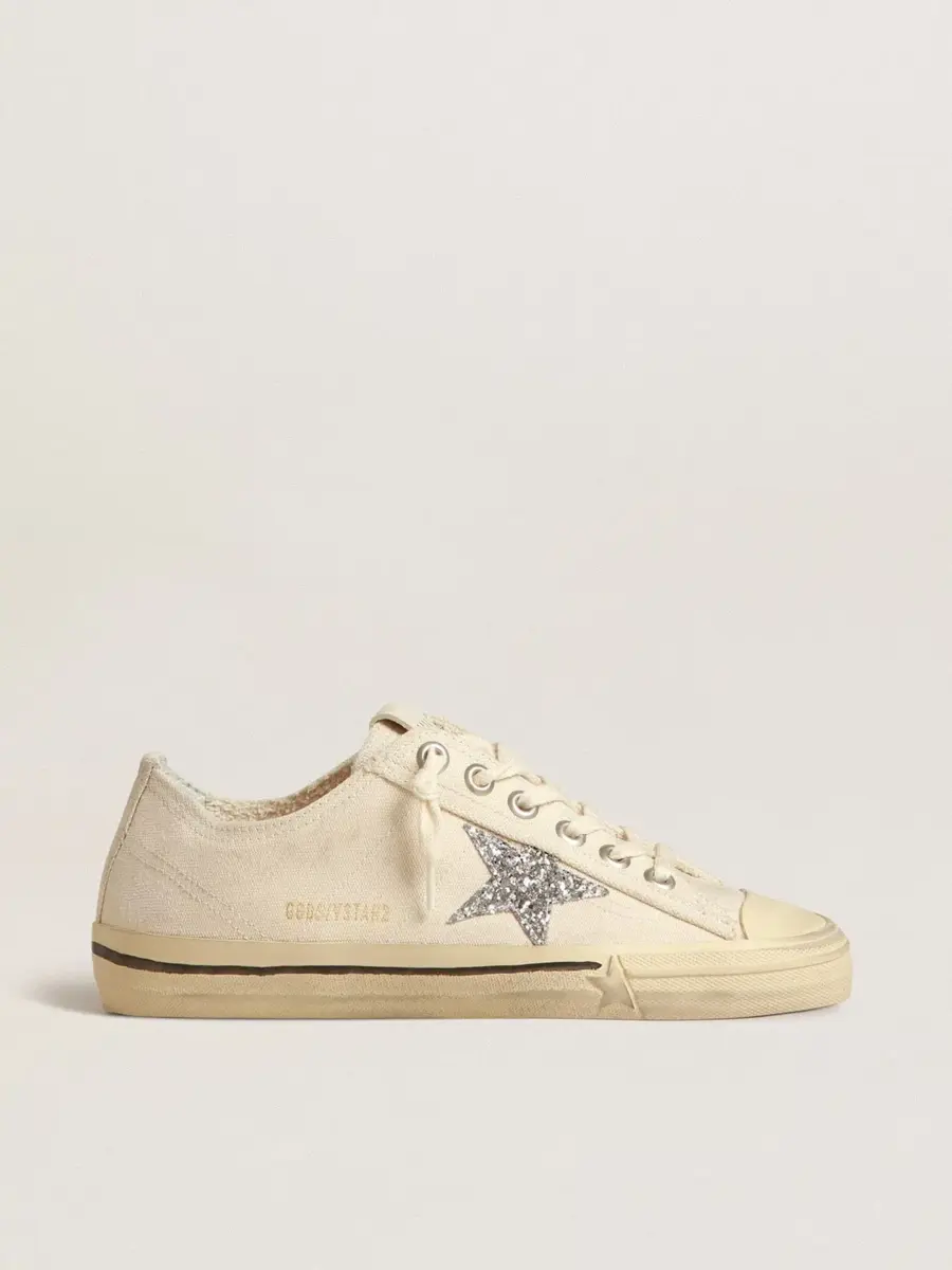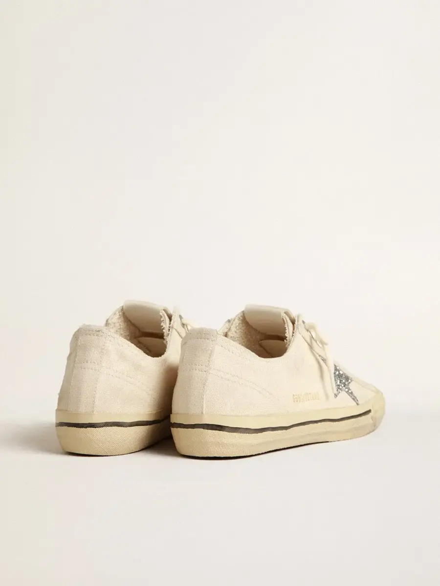 V-Star en lona beige con estrella plateada brillante