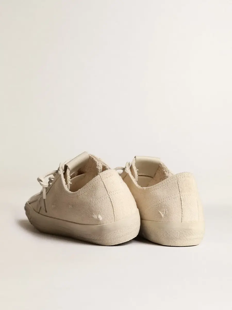 La belleza reside en la simplicidad: en nuestras zapatillas V-Star, una forma esencial se combina con detalles elegantes. Este modelo con parte superior de lona color crema claro presenta una estrella de cuero blanco lechoso y una lengüeta de grogrén color crema claro en el talón. Los cordones blancos lechosos añaden el toque final.