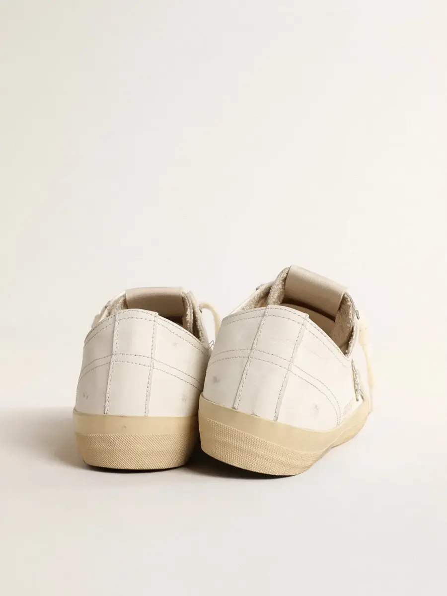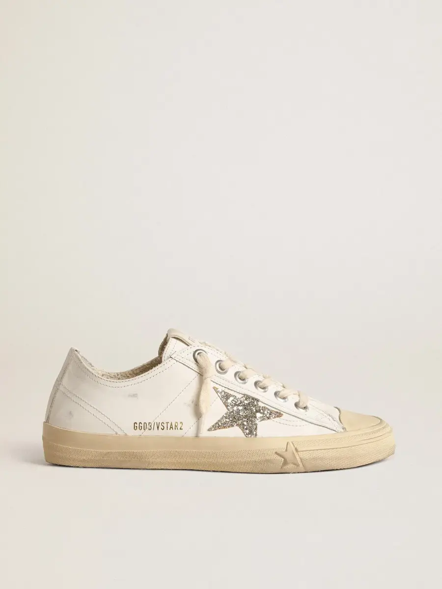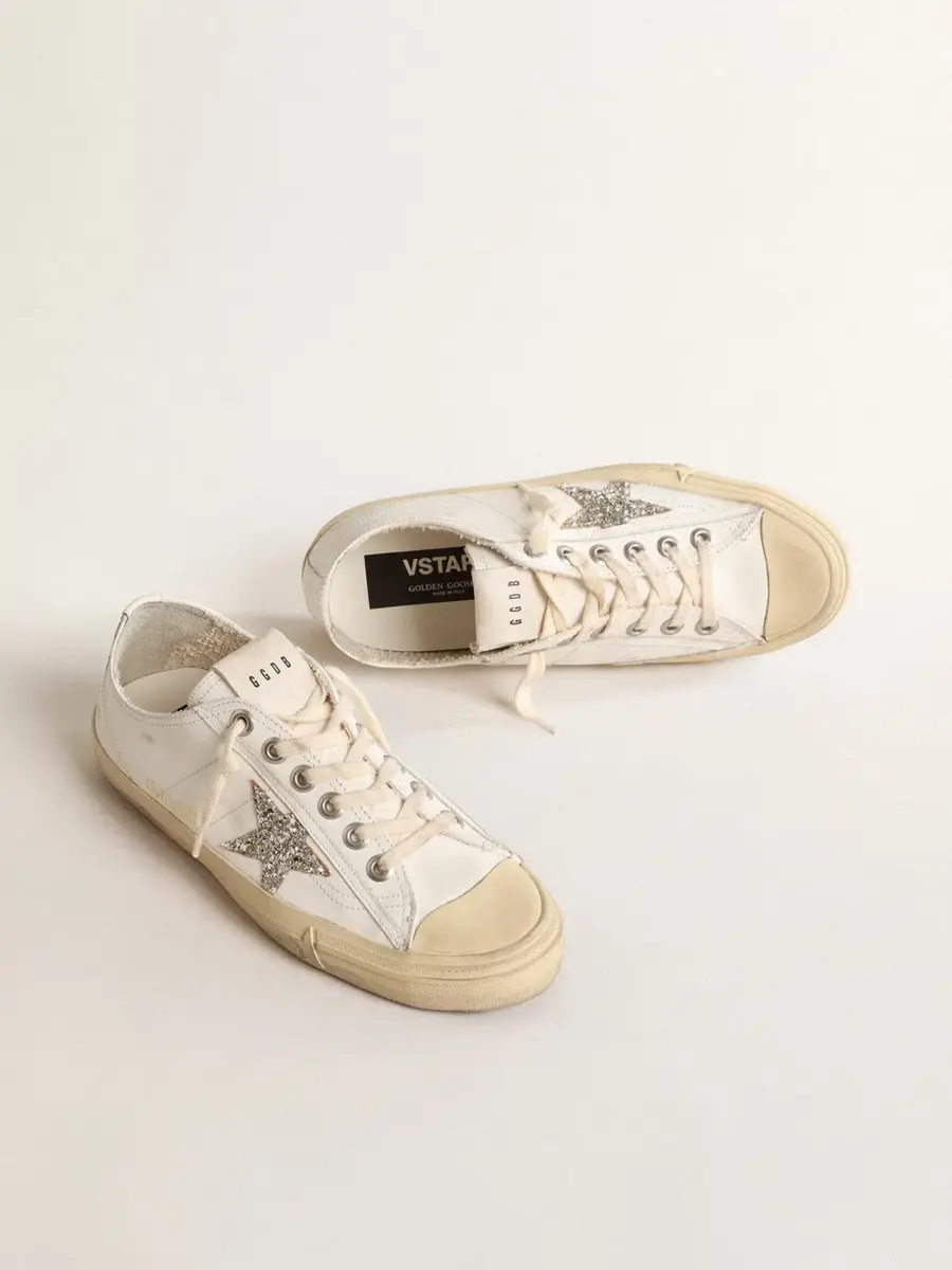 La belleza reside en la simplicidad: en nuestras zapatillas V-Star, una forma esencial se combina con detalles elegantes. Este modelo con parte superior de piel blanca presenta una estrella brillante platino. Los cordones de color crema añaden el toque final.